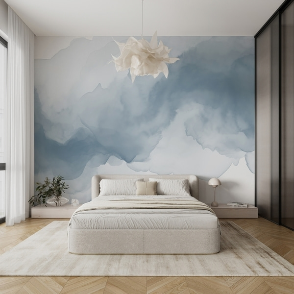 Минималистичко дрвеће у плаво-сивој палети, у магли