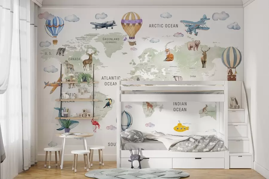 Кит са акварелним цвећем, океанским животињама, минимализмом, розе и зелене боје