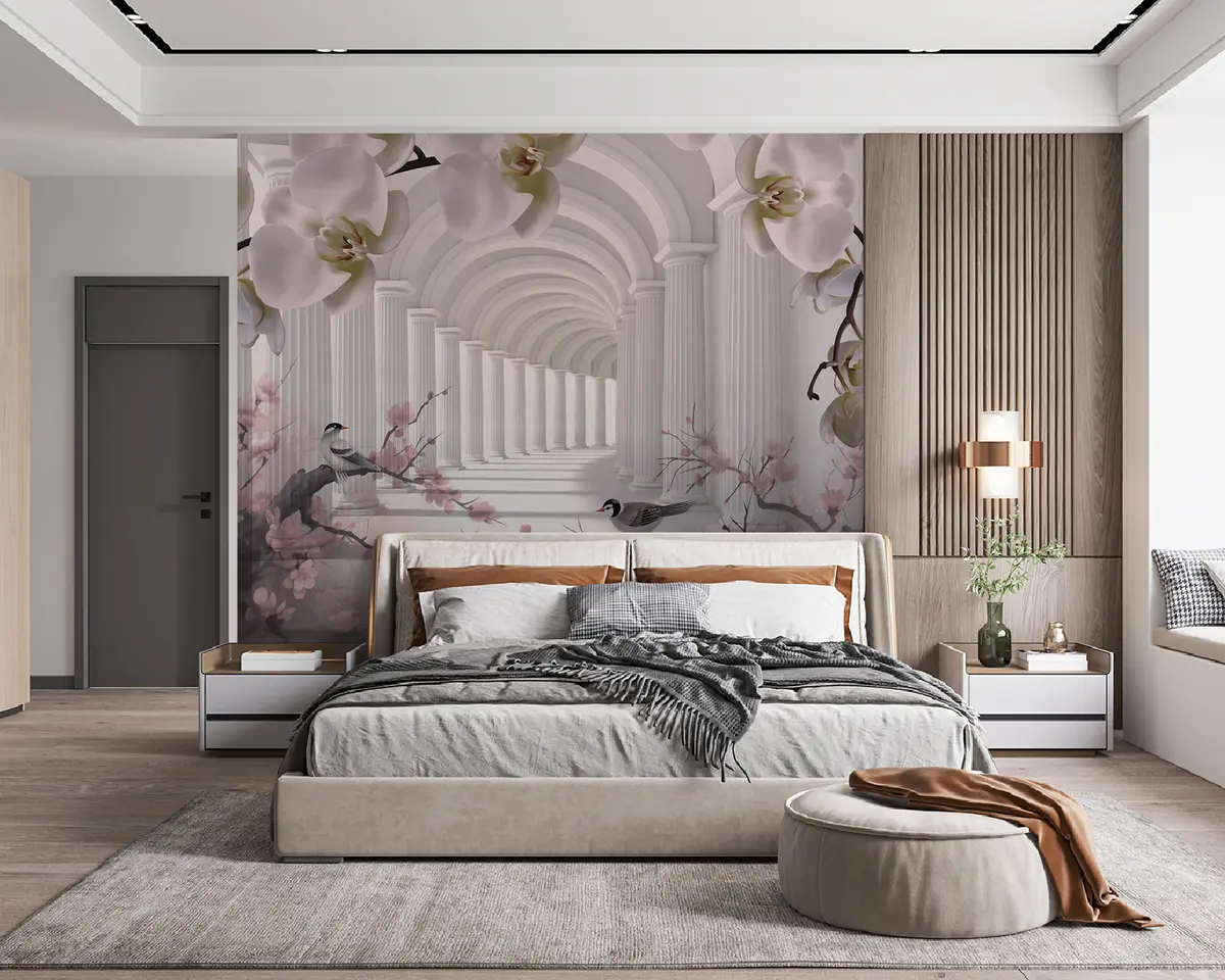 Тапете за зид Предиван тунел са птицама и орхидејима бр. u94513