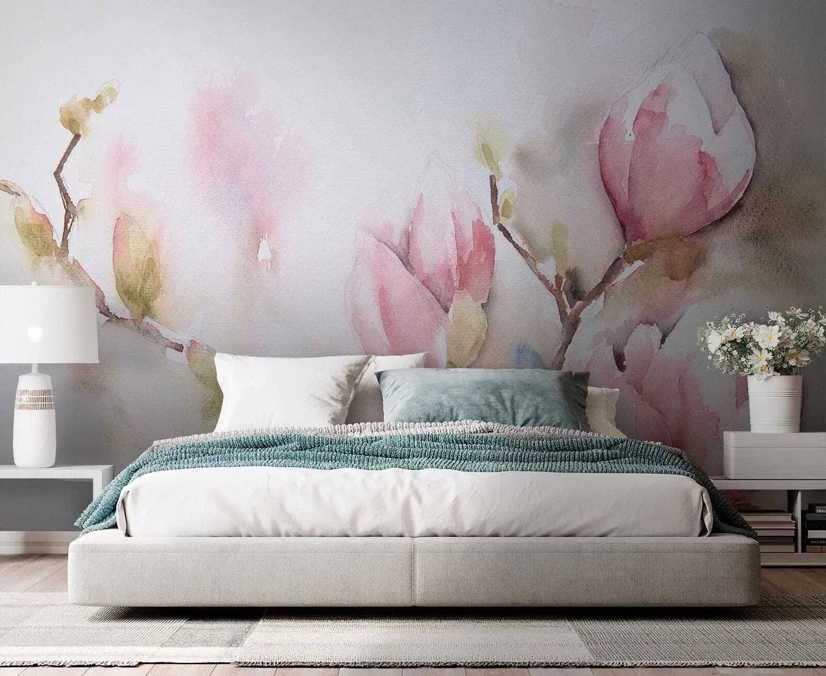 Тапете за зид Магнолије цветају, сликање акварелом бр. u53757