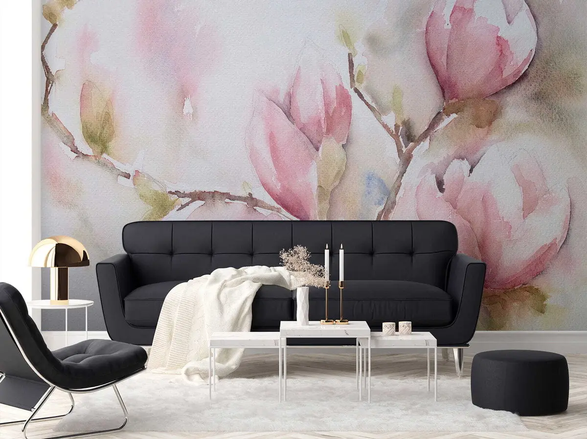 Тапете за зид Магнолије цветају, сликање акварелом бр. u53757