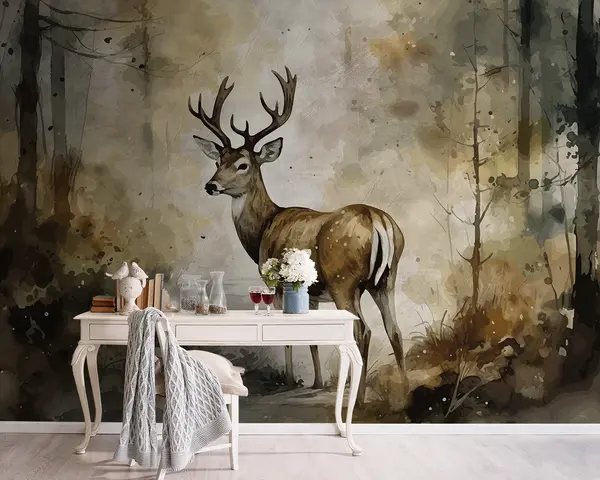 Тапете за зид Ручно нацртано јелена у шуми бр. u95410