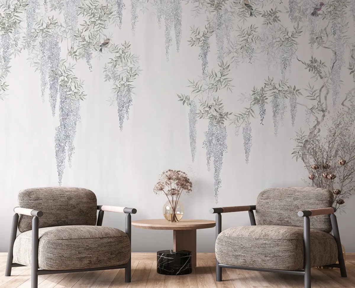 Тапете за зид Цвеће Вистериа, Вистериа, минимализам, једнобојна, поткровље и јапански стил бр. u96928