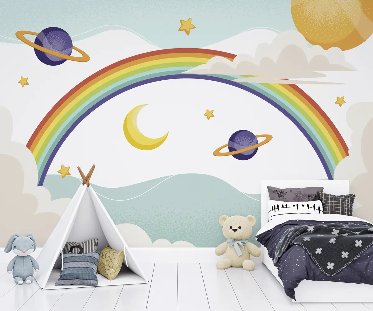 Тапете за зид Раинбов у облацима, планете, звезде бр. u94327