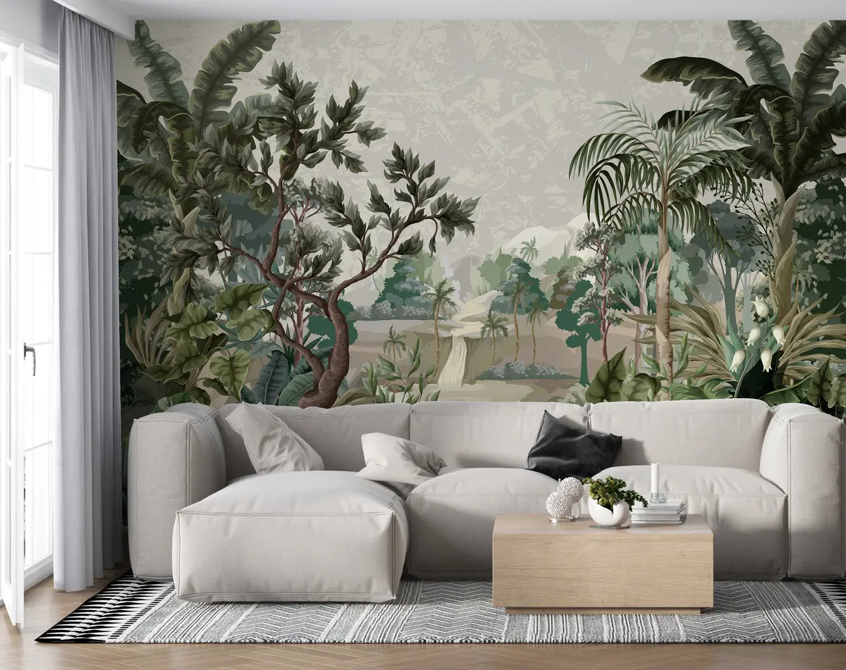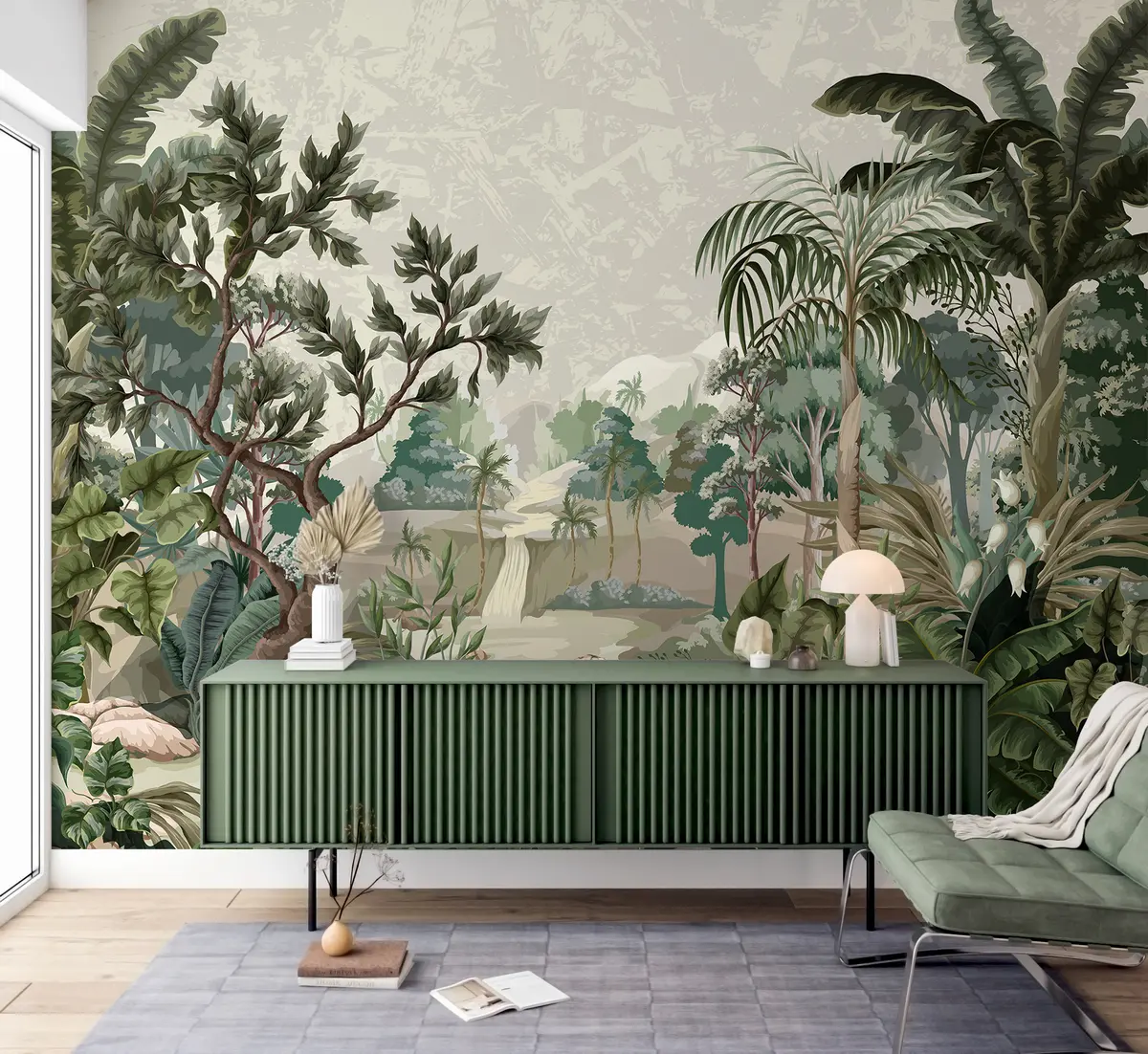 Тапете за зид Џунгла са реком и палмима бр. u95915