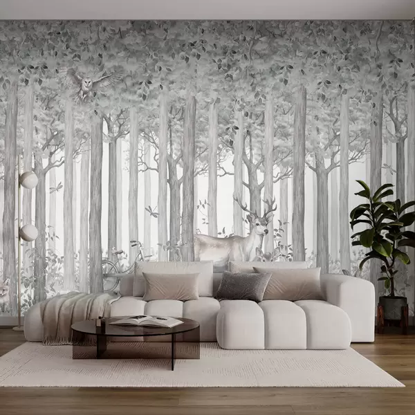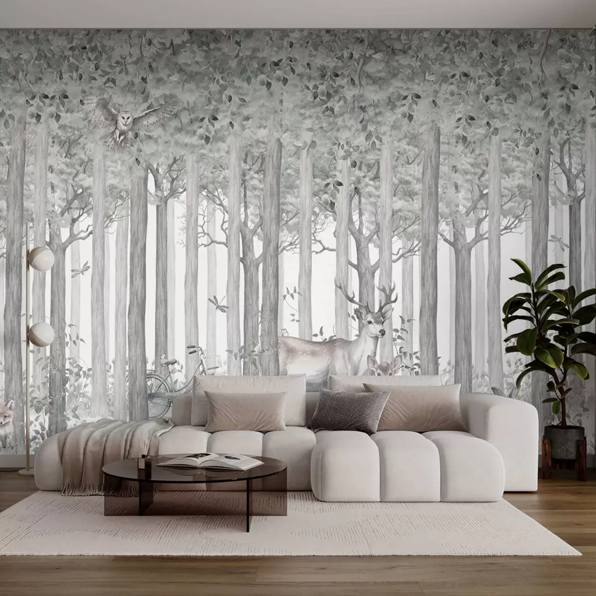 Тапете за зид Шумске животиње јелен и сива сова бр. u97629v1