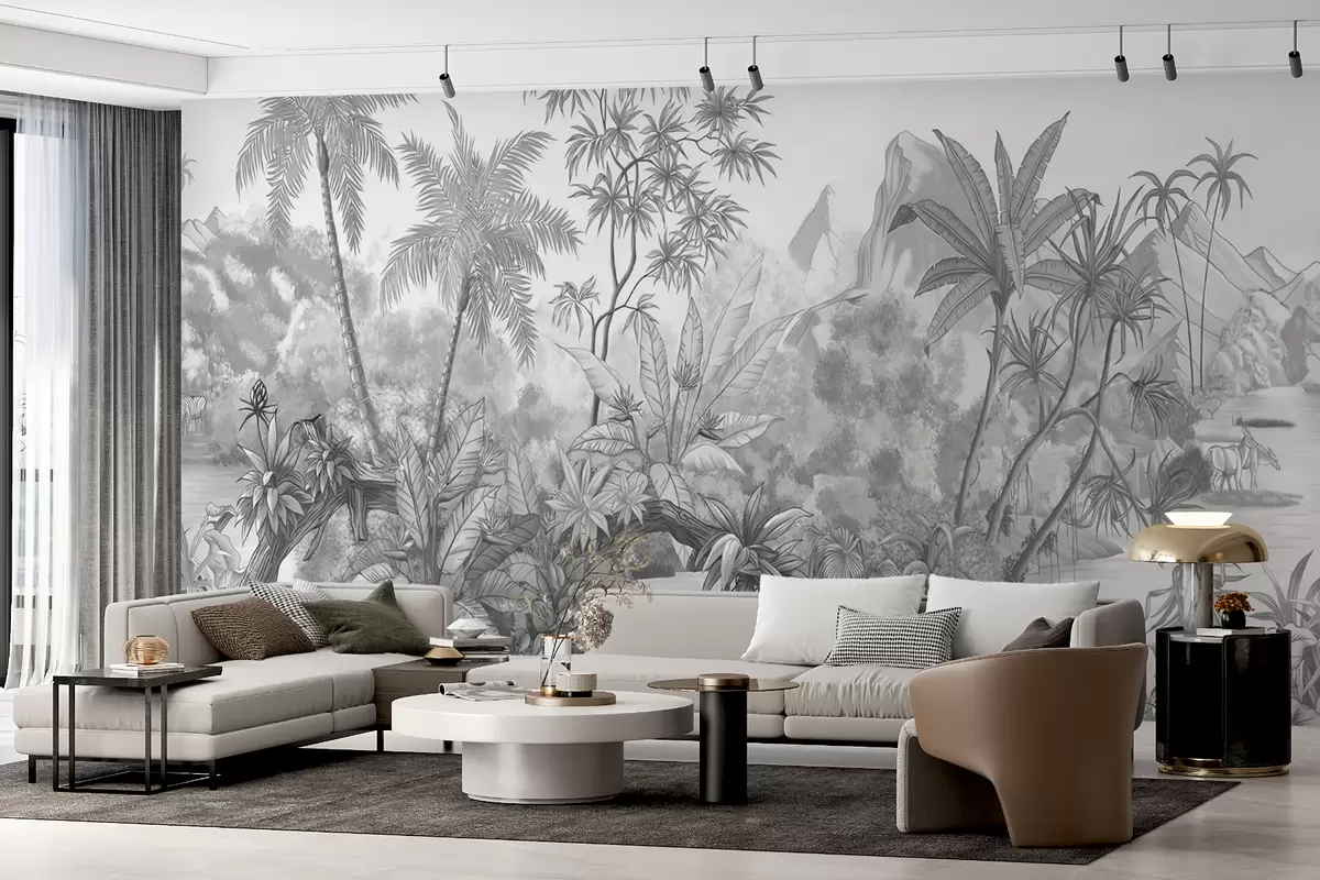Тапете за зид Црно-бели тропи бр. u59039