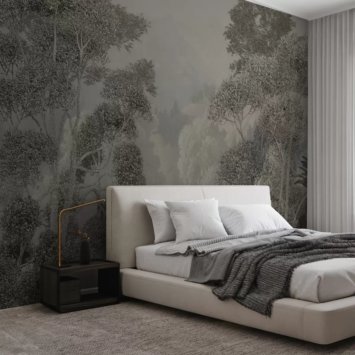 Тапете за зид Тропска шума у сивим тоновима бр. u97396