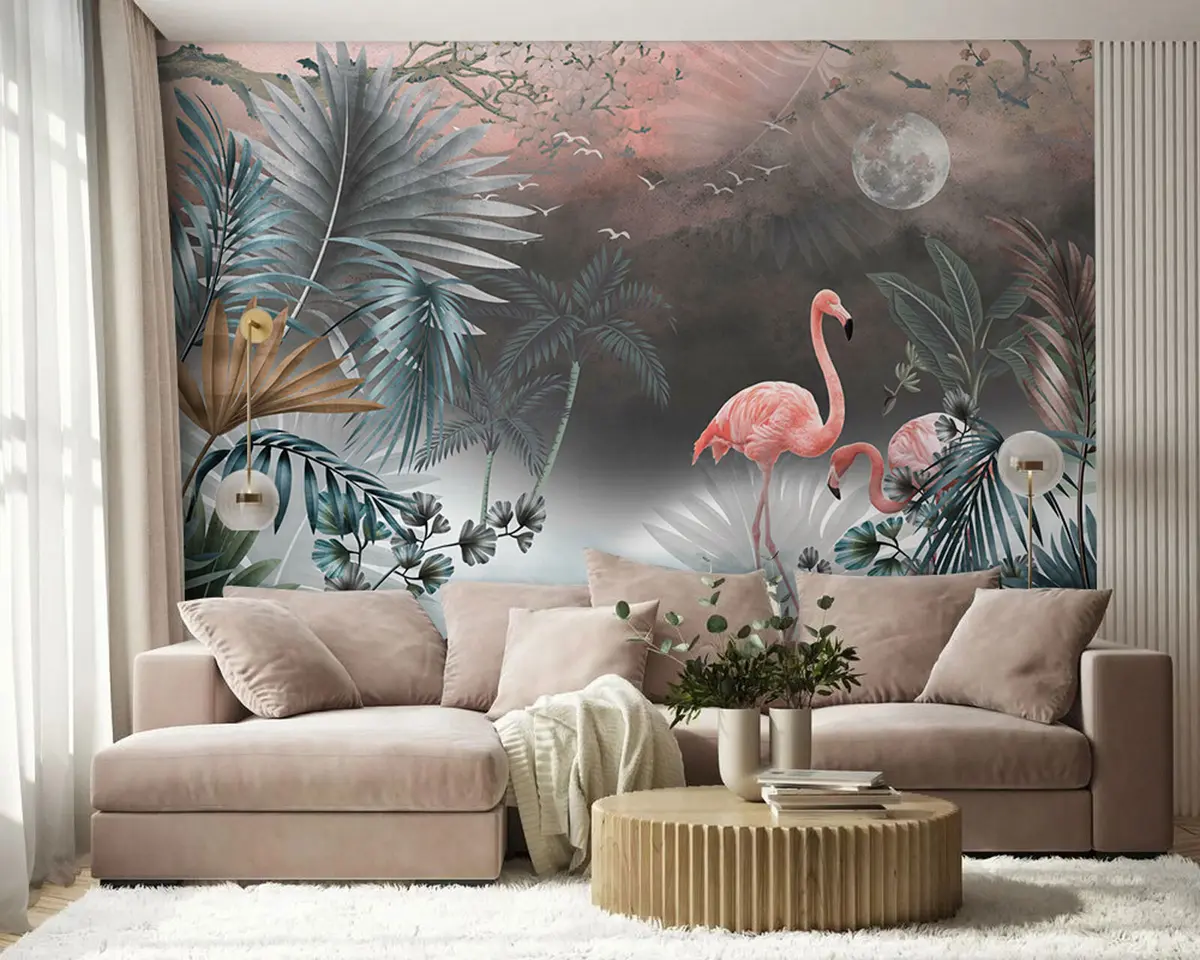 Тапете за зид Фламинго и биљке бр. u78601