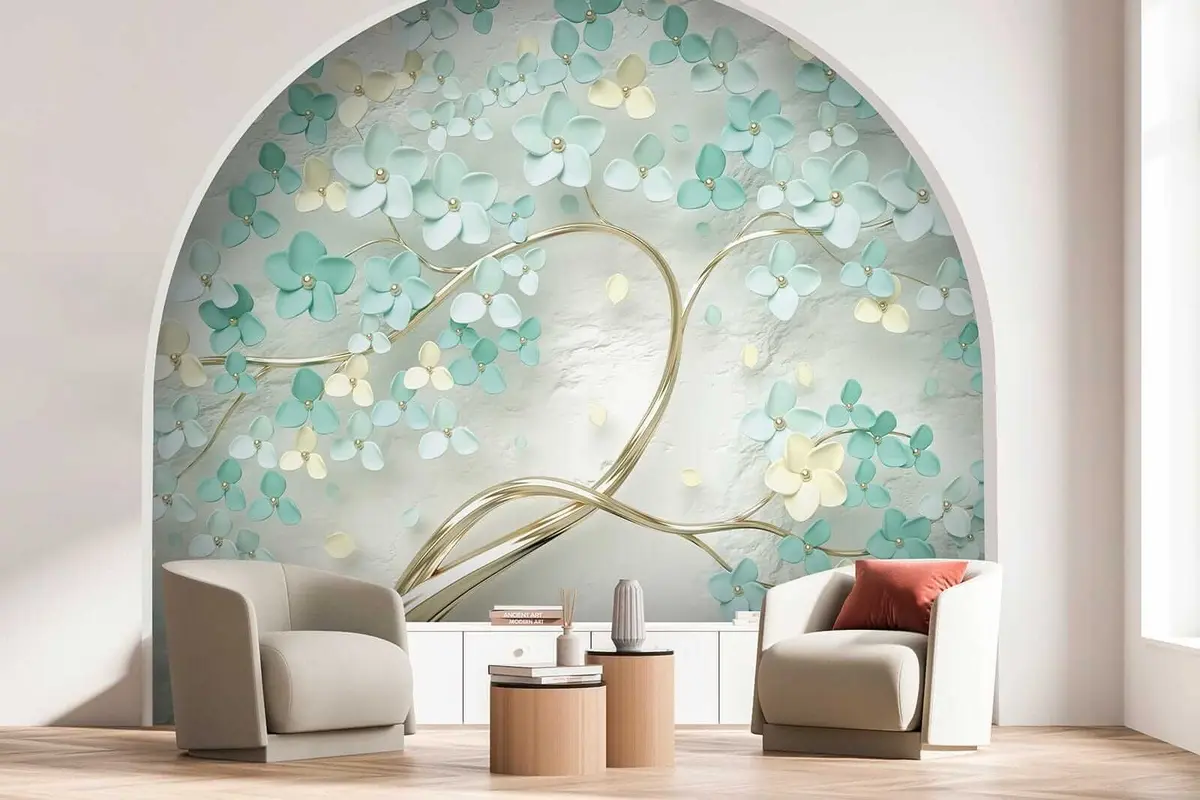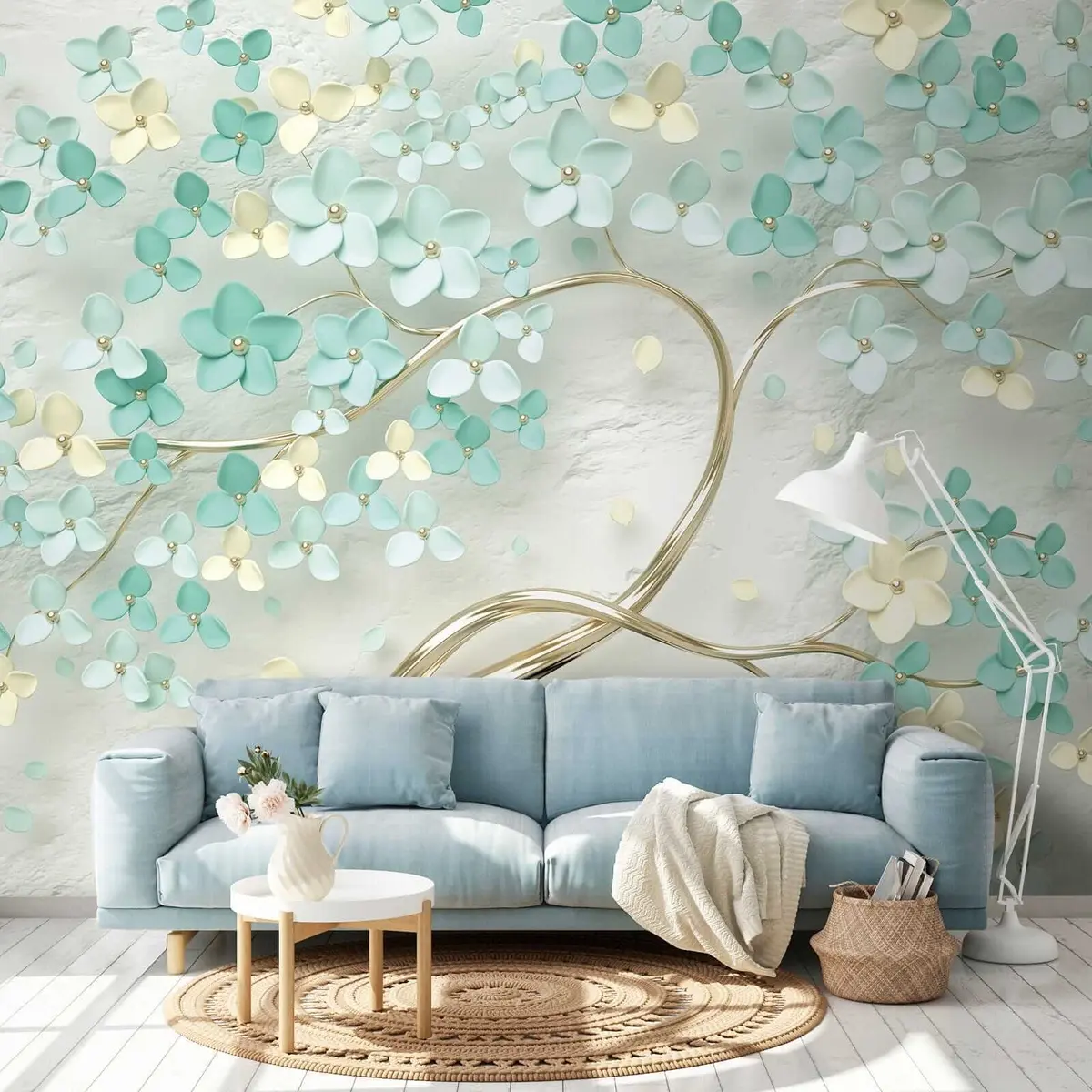 Тапете за зид Дрво са плавим цвећем бр. u52550