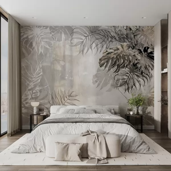 Тапете за зид Дизајн тропске лишће помоћу текстуре грунге бр. u94647