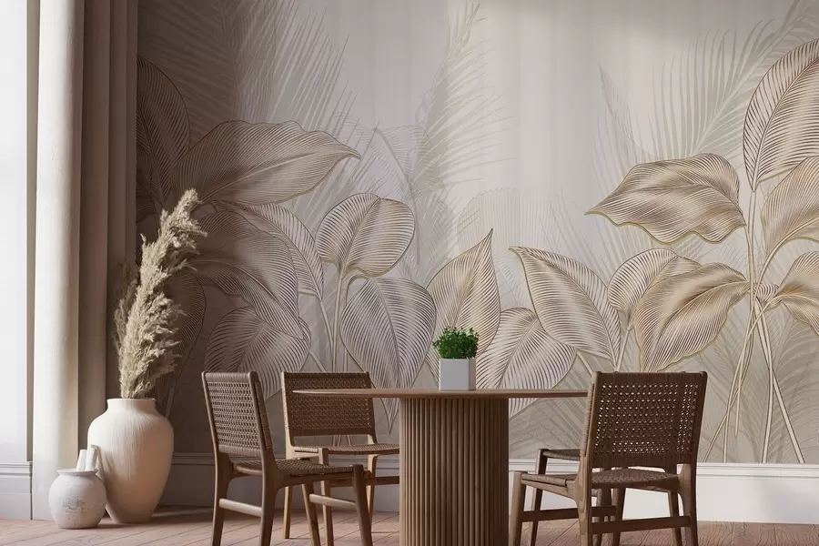 Велики тропски листови у суздржаним деликатним пастелним нијансама