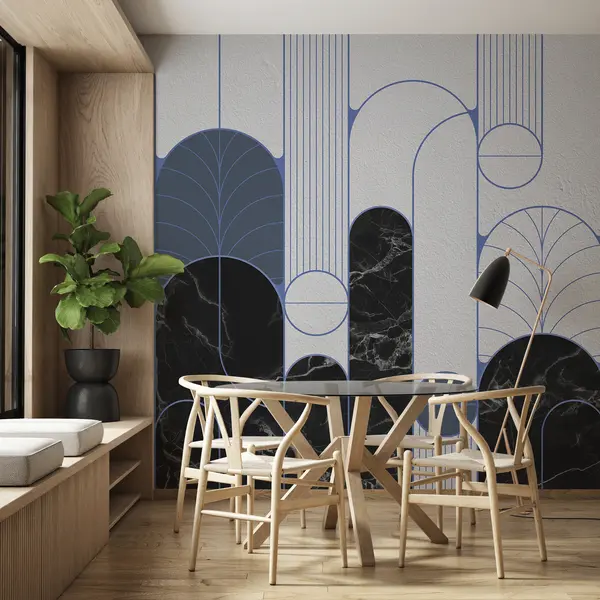 Тапете за зид Лукови у стилу Арт Децо у плавим бојама бр. u73101v1