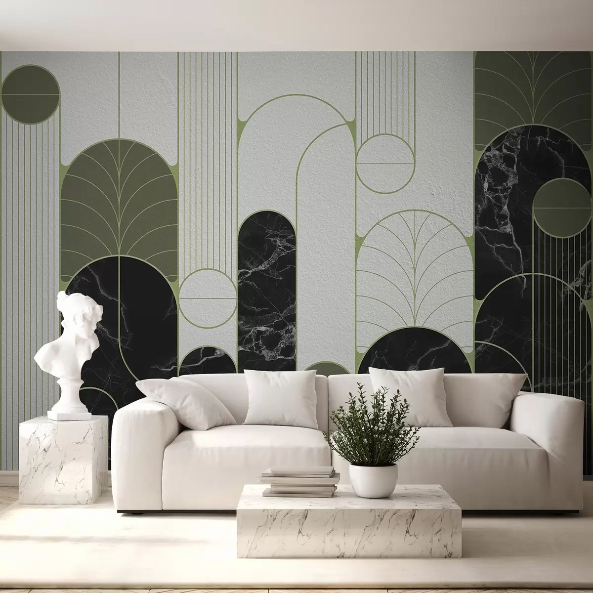 Тапете за зид Лукови у стилу Арт Децо у зеленим бојама бр. u73101v2