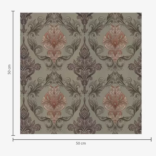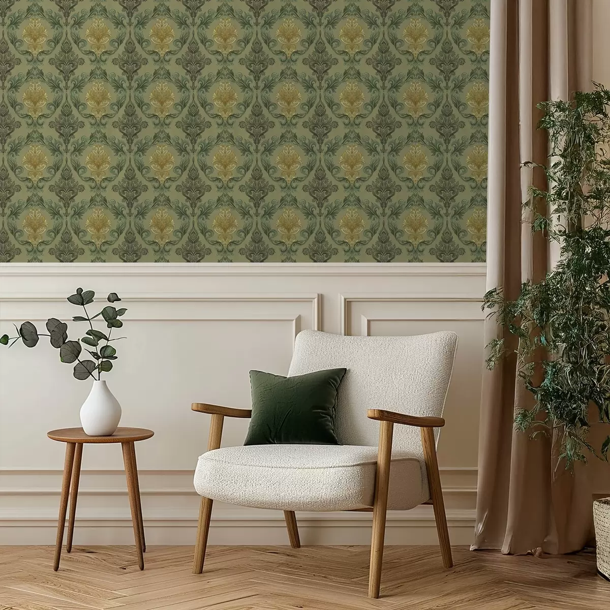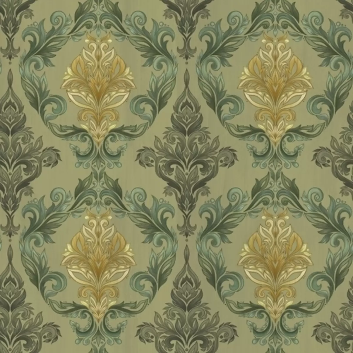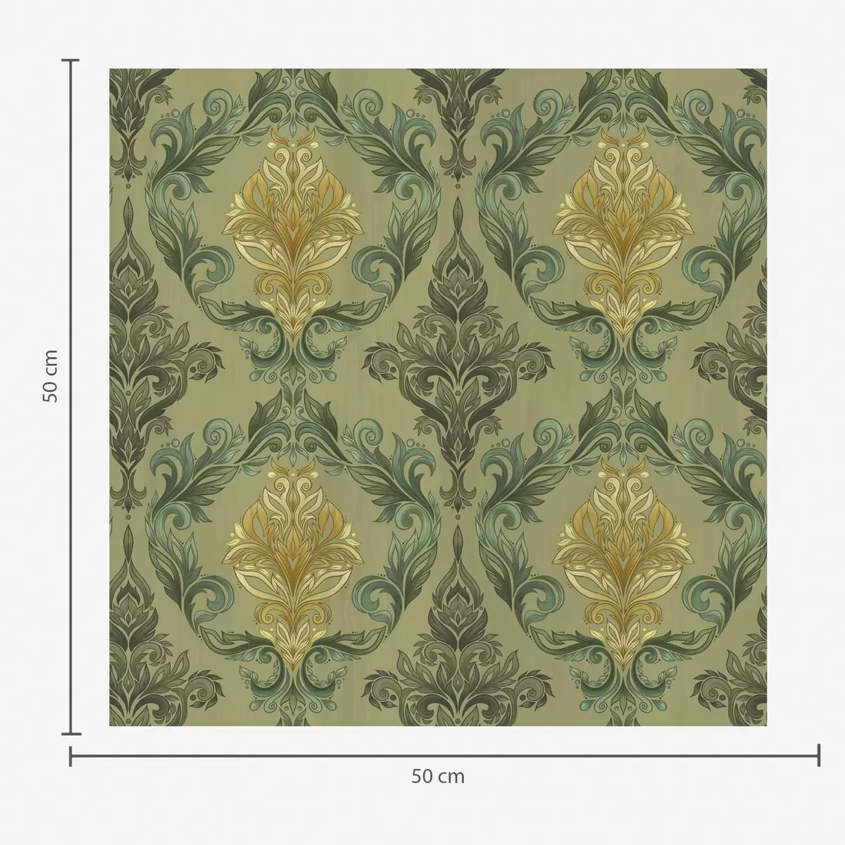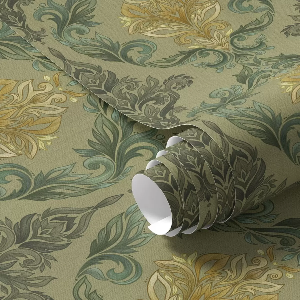 Тапете за зид Дамаск са биљним спиралама, маслинасто-окер палета бр. a00828