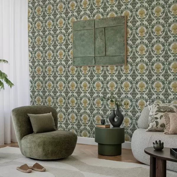 Tapeta Дамаск са зеленим свицима на светлој подлози бр. a00828v1