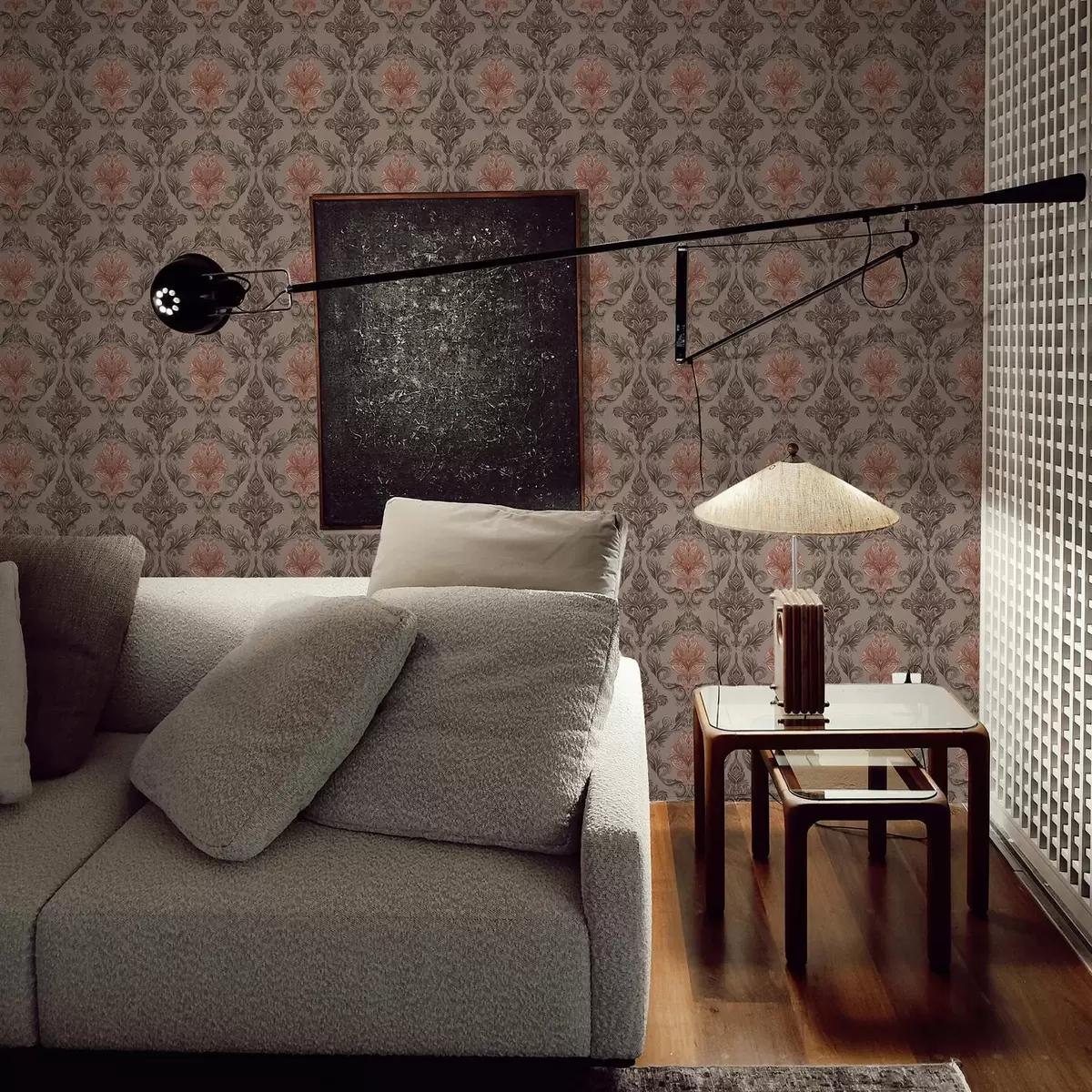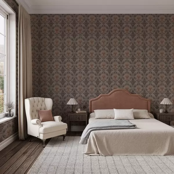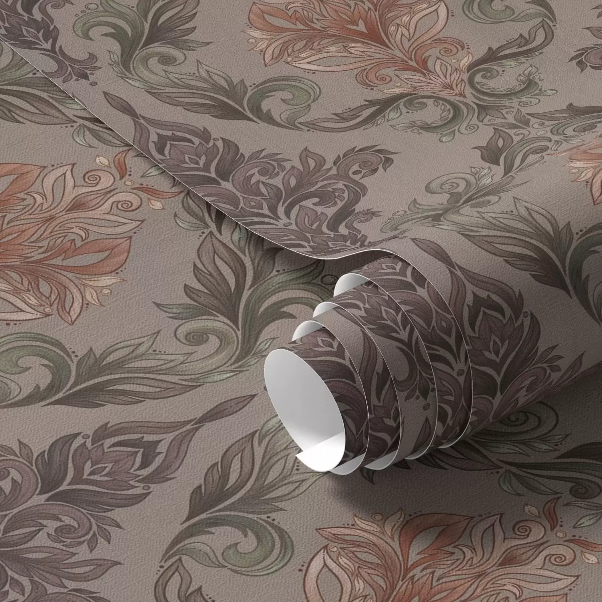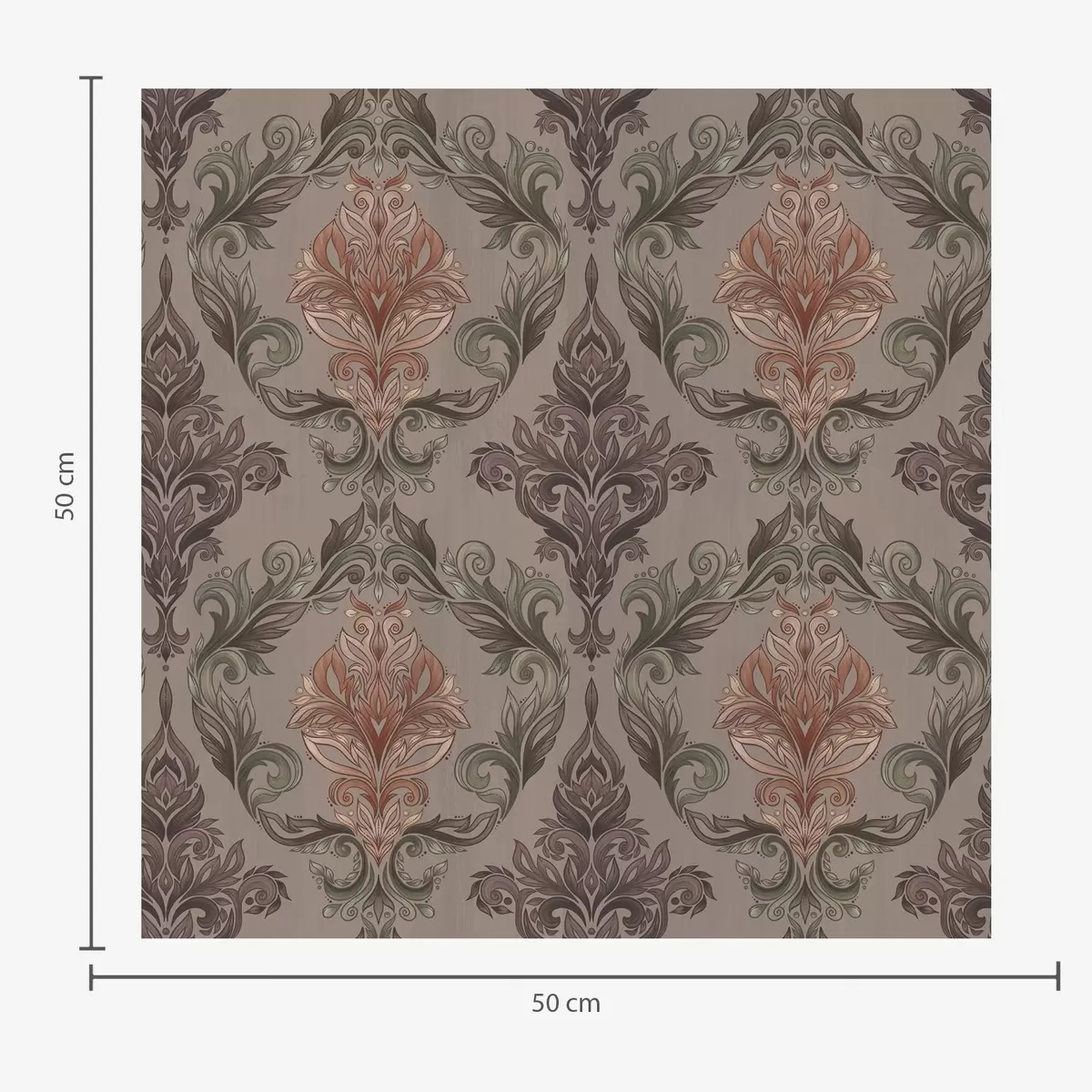 Tapeta Дамаск у смеђе-теракот палети, топло сива позадина бр. a00828v2