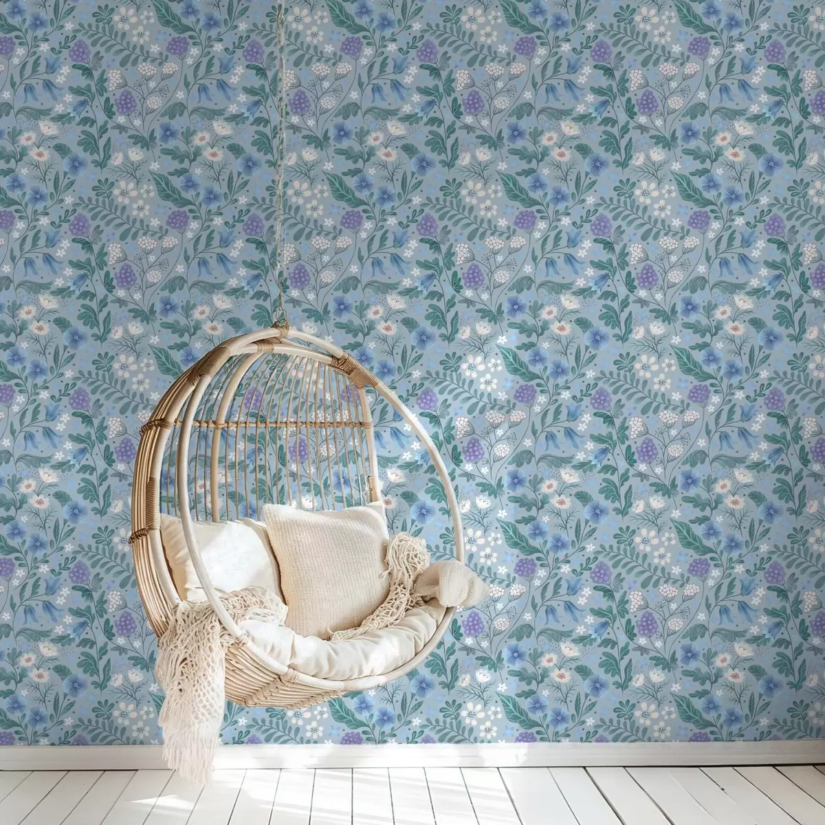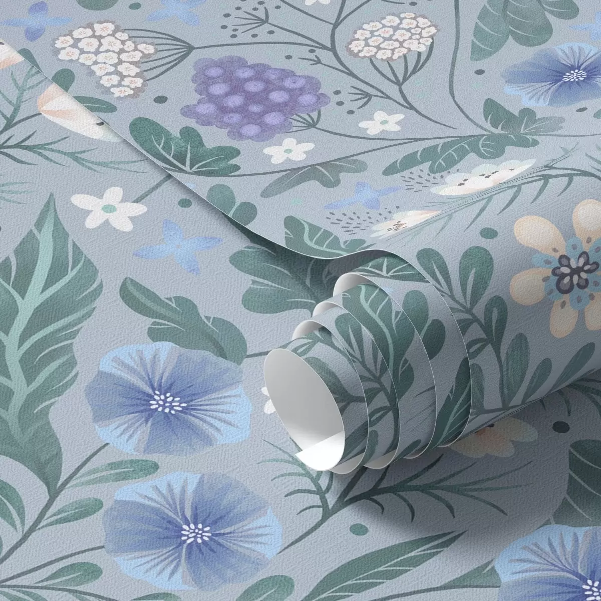 Tapeta Дивље цвеће и бобице на сиво-плавој позадини бр. a00849v1