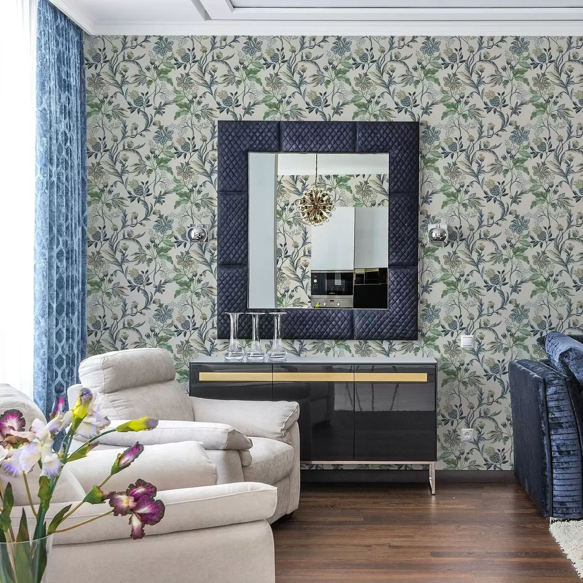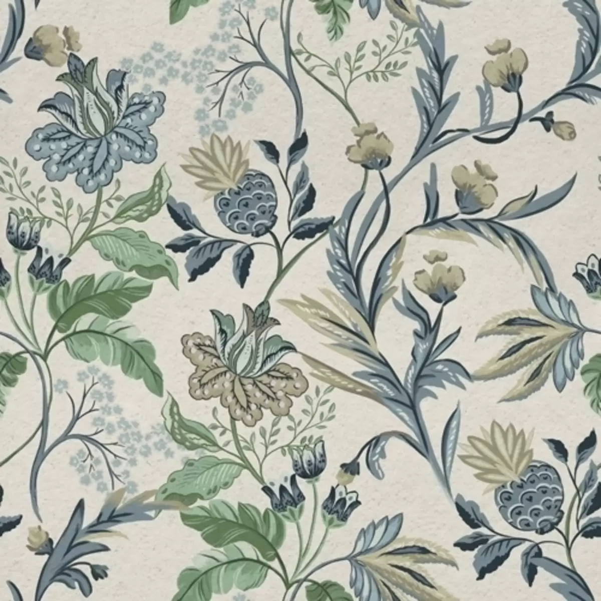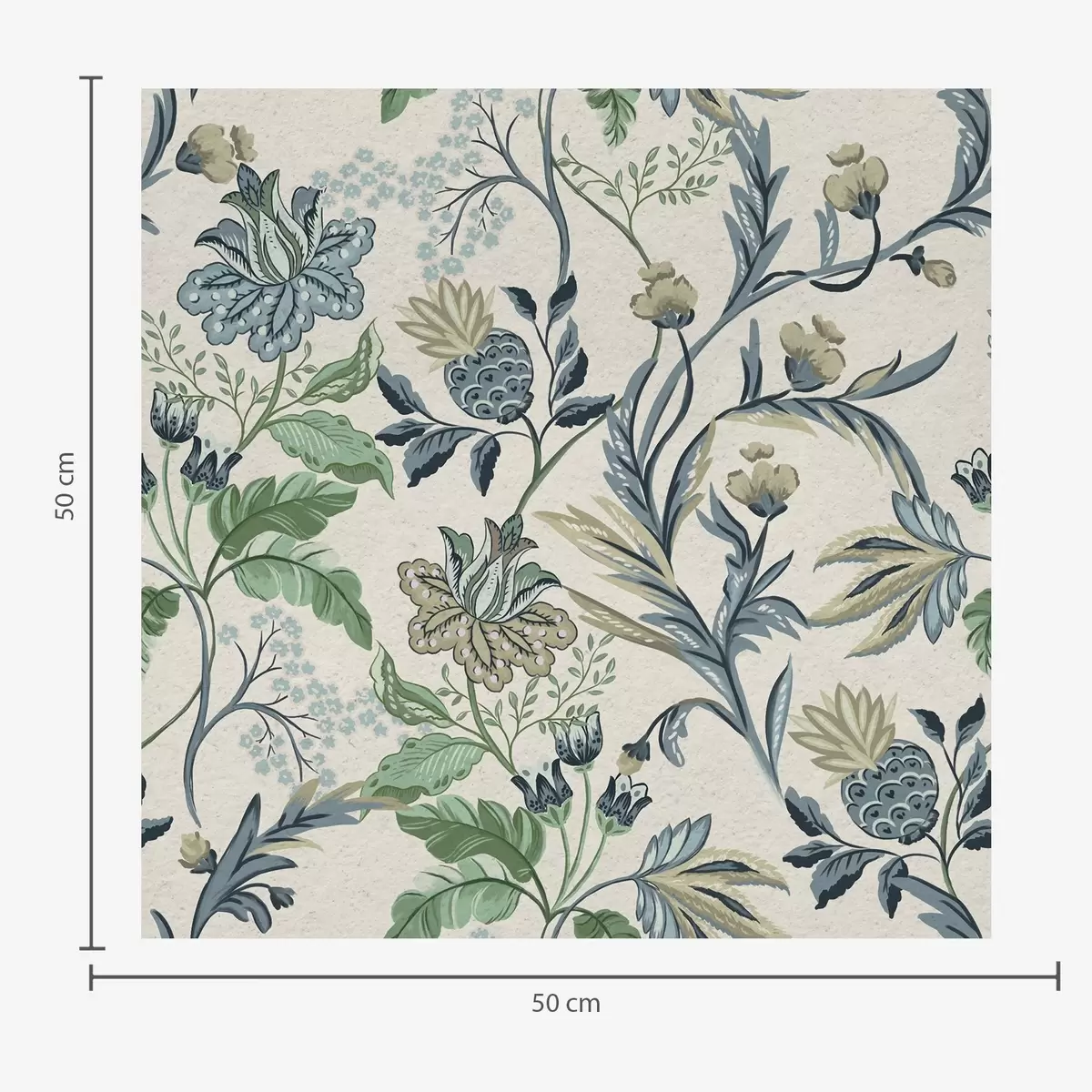Тапете за зид Плаво-зелени народни цвећари и листови на кремастој подлози бр. a00863