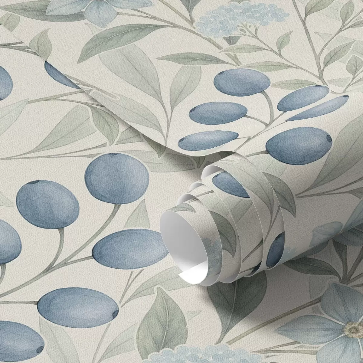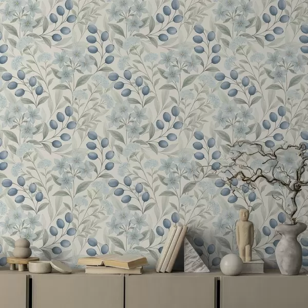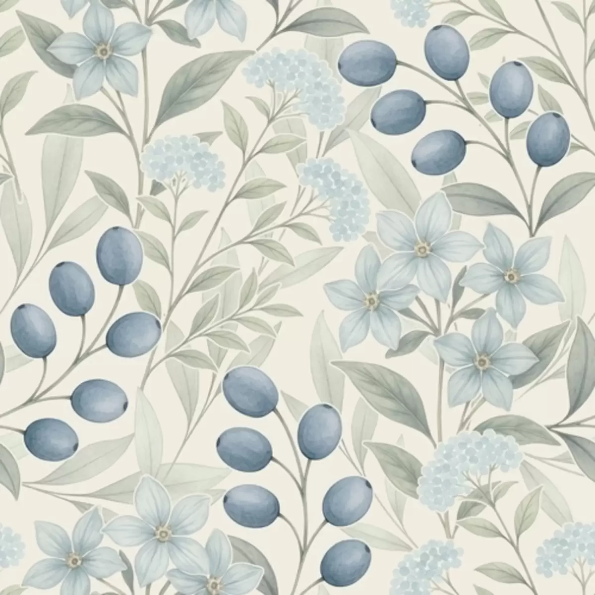 Тапете за зид Боровнице и светло цвеће на слоновачи бр. a00872