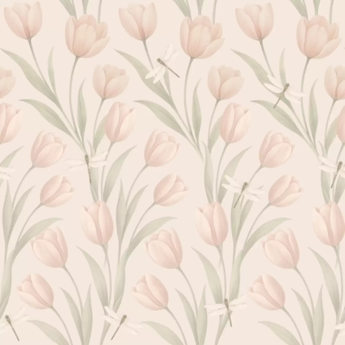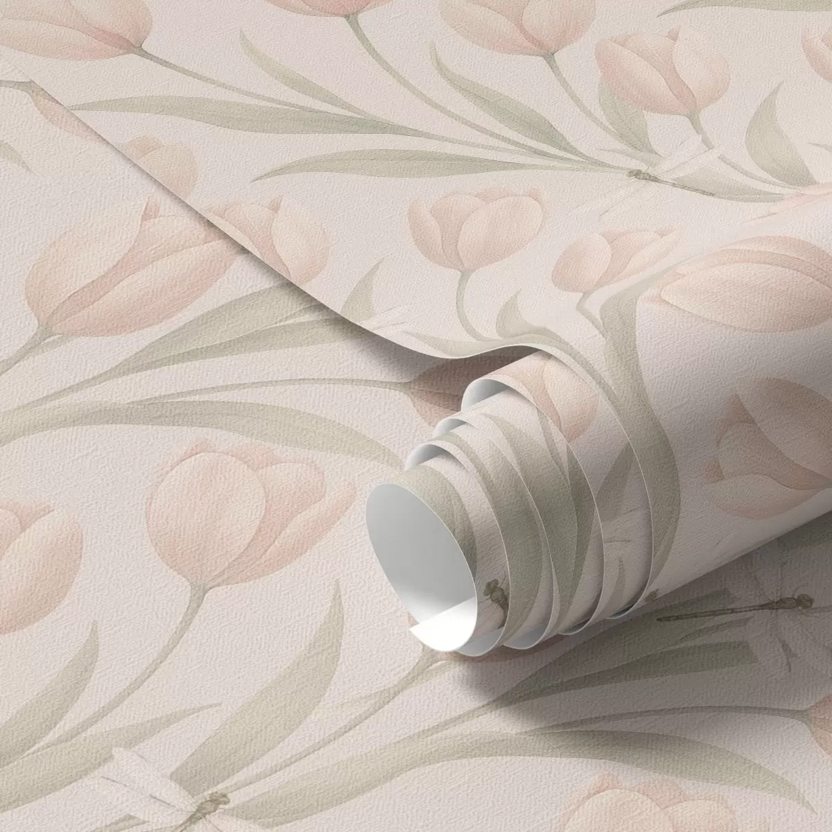Тапете за зид Пастелни тулипани са вилиним коњицима на руменилу бр. a00876