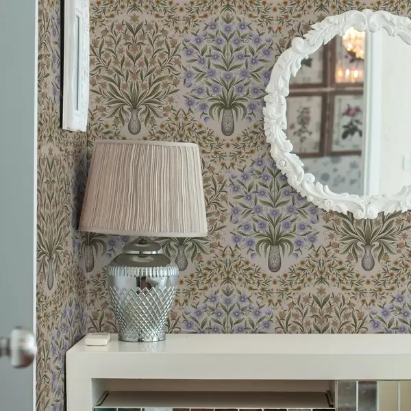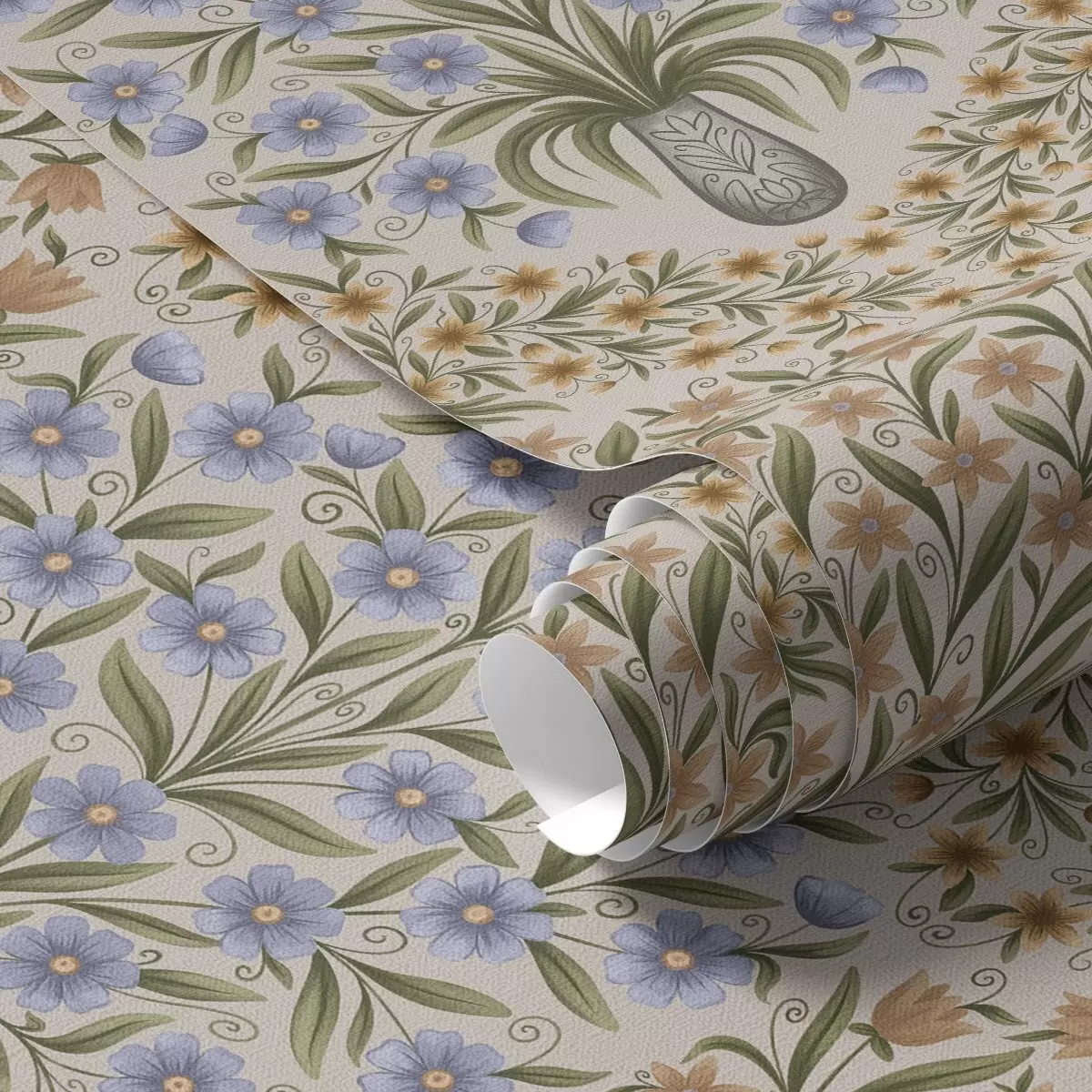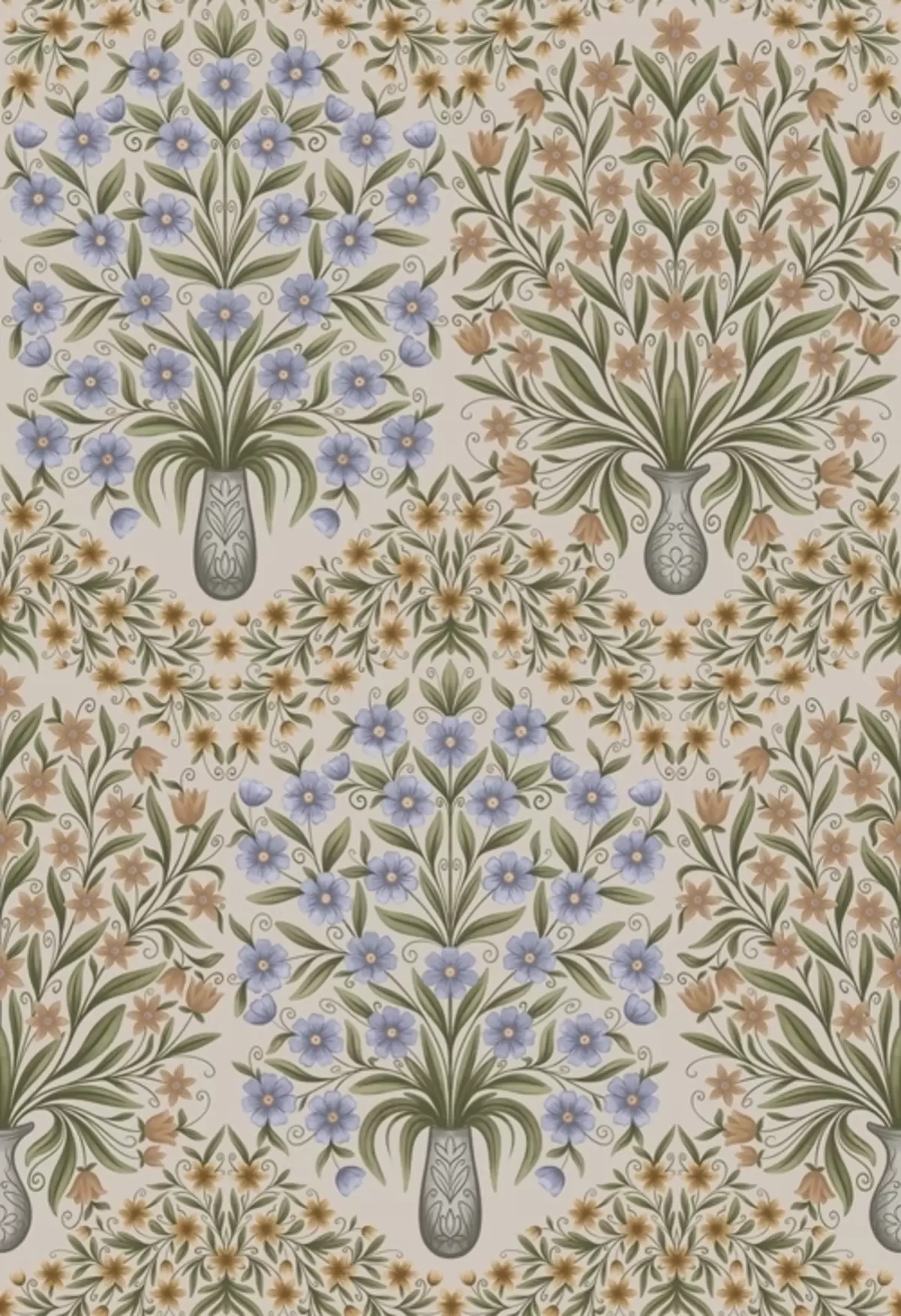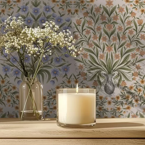 Тапете за зид Наизменично наизменични вазе и плави цветни аранжмани у боји жалфије на руменилу бр. a00901