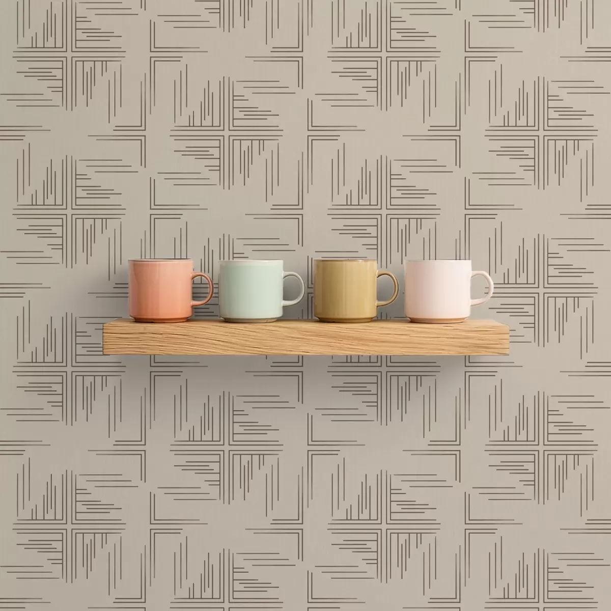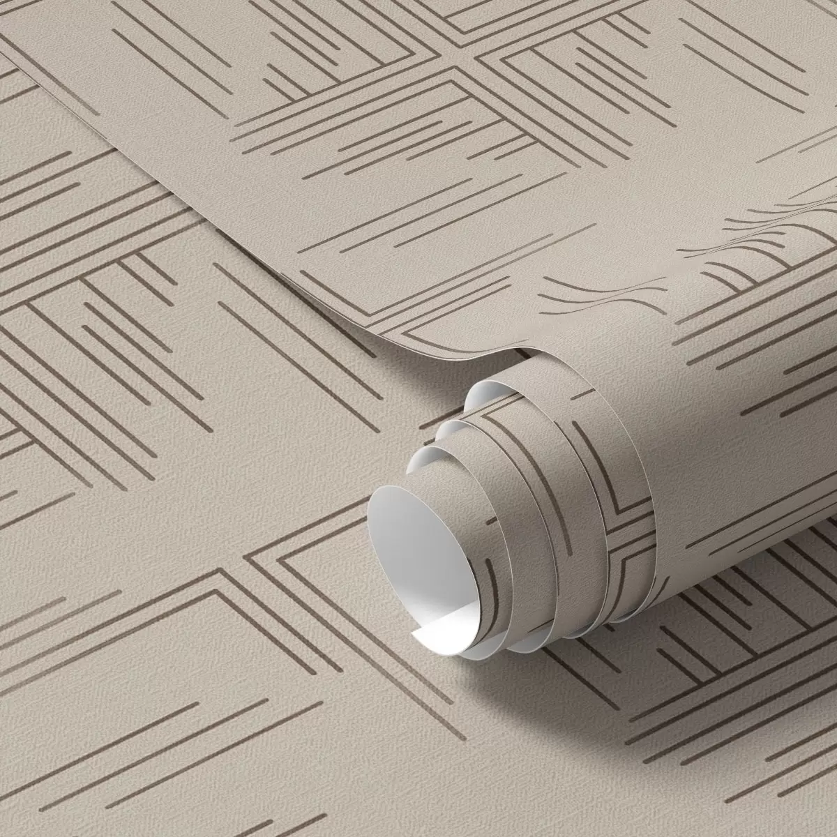 Тапете за зид Офсетни какао угаони блокови са расутим линијским акцентима, беж бр. a00912