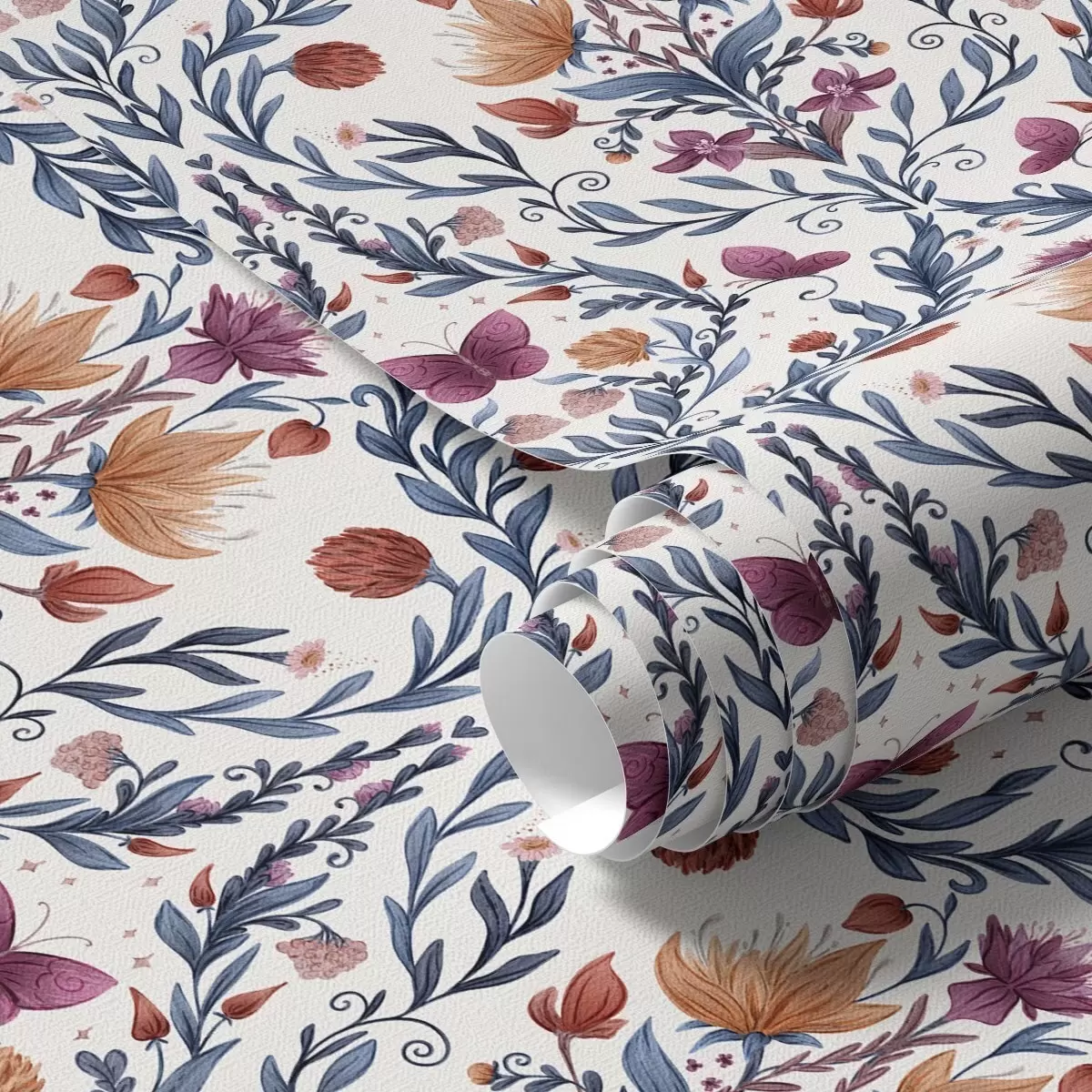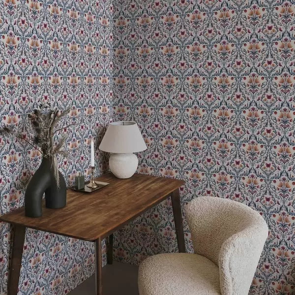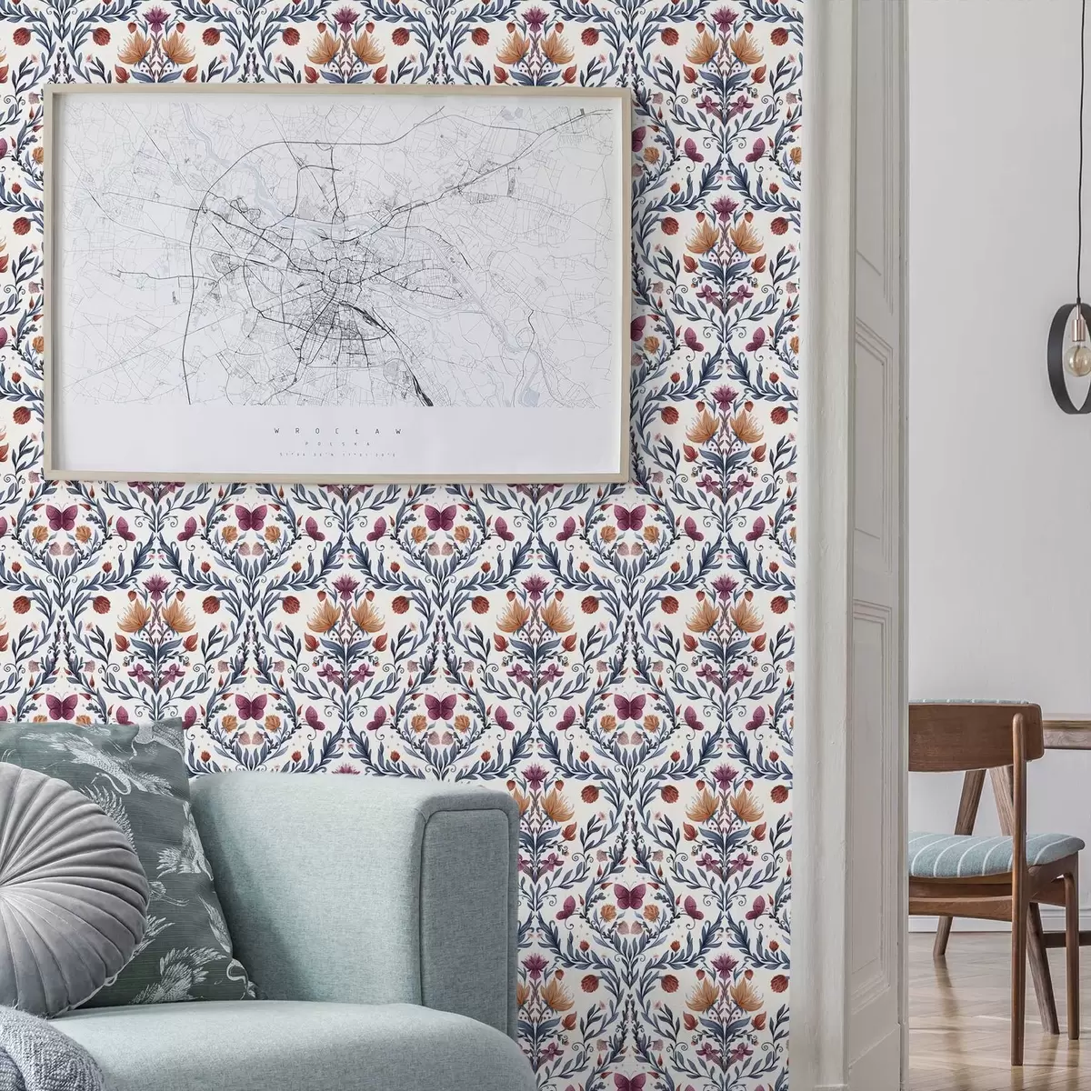 Tapeta Цветни дамаск са лептирима на топлој кремастој подлози бр. a00926v2