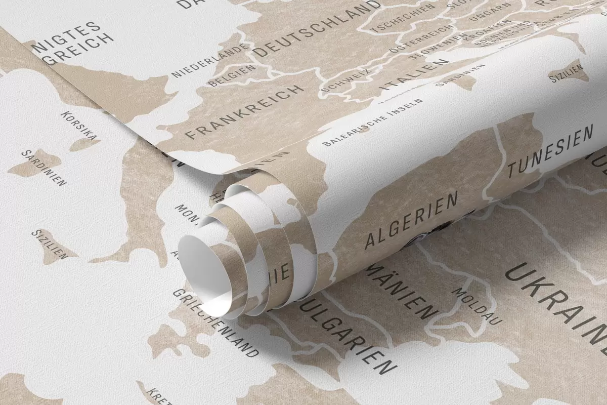Тапете за зид Дечја мапа у акварел стилу са животињама и балонима на врући ваздух. Немачки језик. Беж боја. бр. c00001dev2