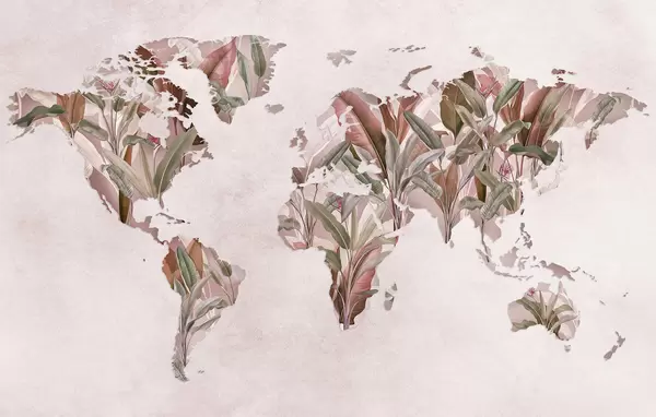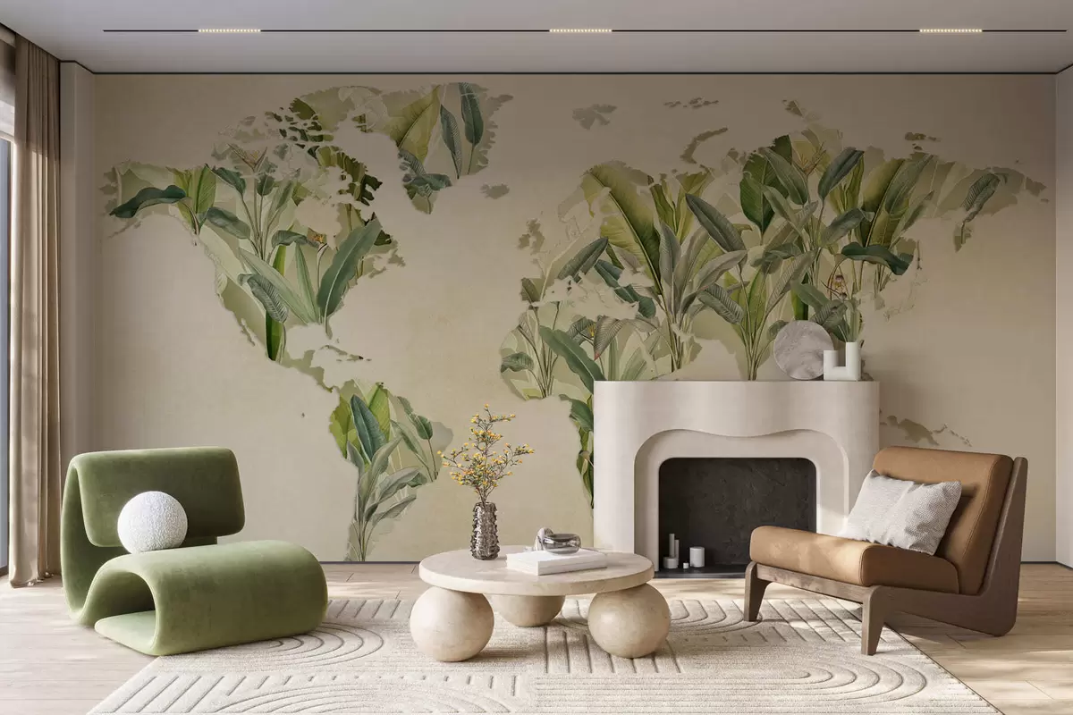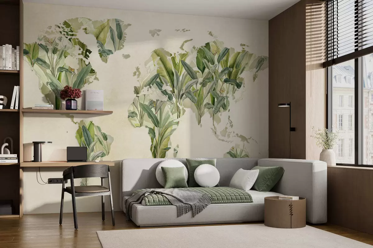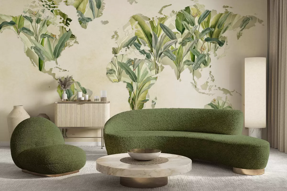 Тапете за зид Зелена мапа света направљена од листова банане бр. c00007