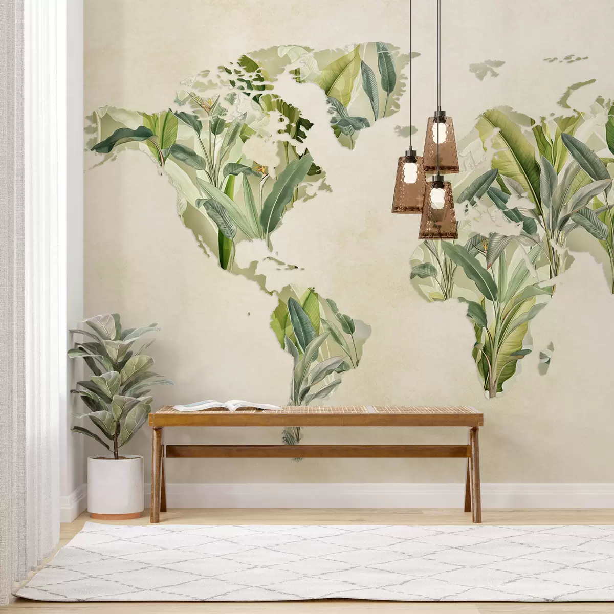 Тапете за зид Зелена мапа света направљена од листова банане бр. c00007