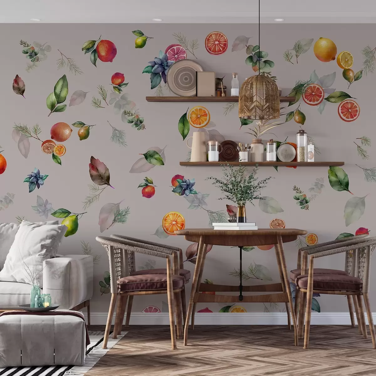 Тапете за зид Шарени узорак воћа и лишћа бр. u98770v1