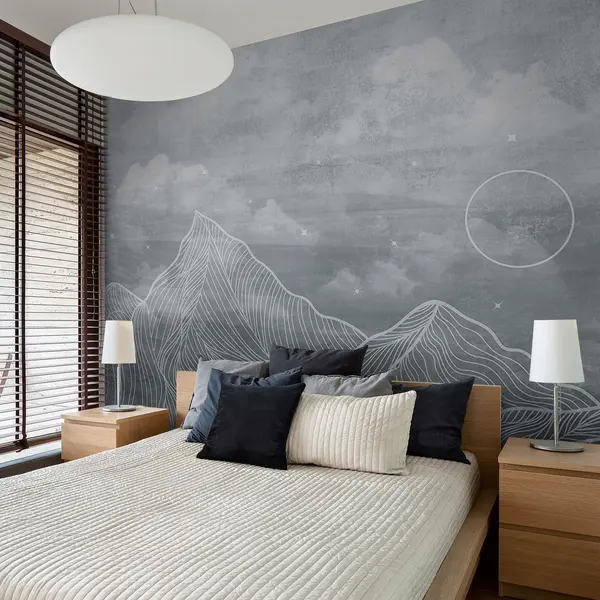 Тапете за зид Грунге текстура са облацима и планинама, сива боја, Природна тема бр. u98838v1