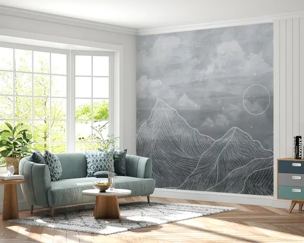 Тапете за зид Грунге текстура са облацима и планинама, сива боја, Природна тема бр. u98838v1
