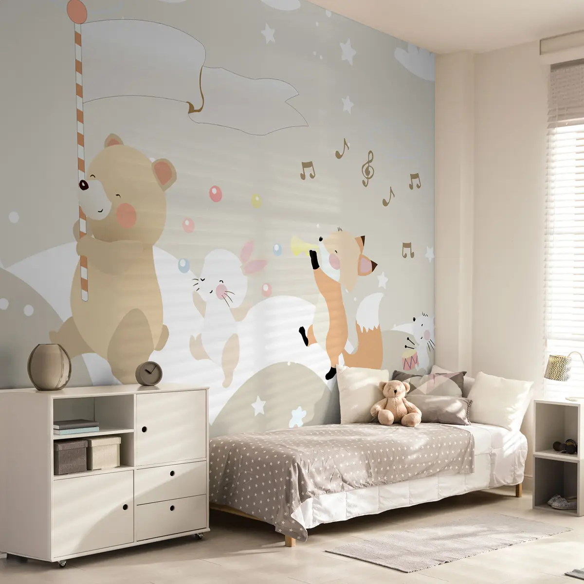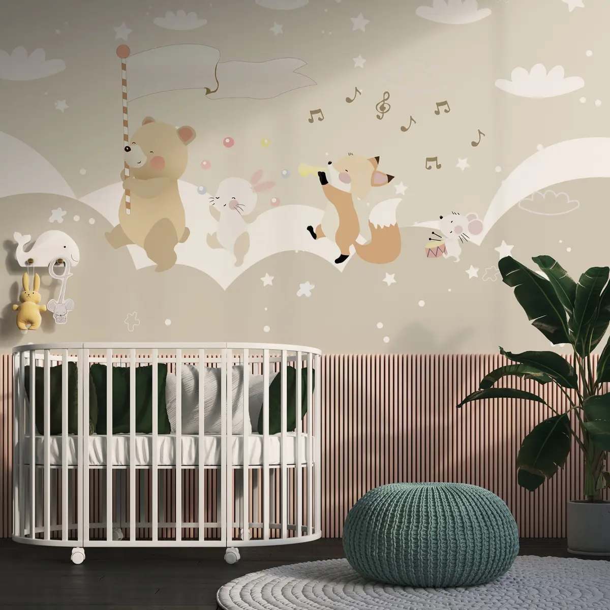 Тапете за зид Дизајн тапета за дечију собу са слатким животињама у ружичастим тоновима бр. u98969