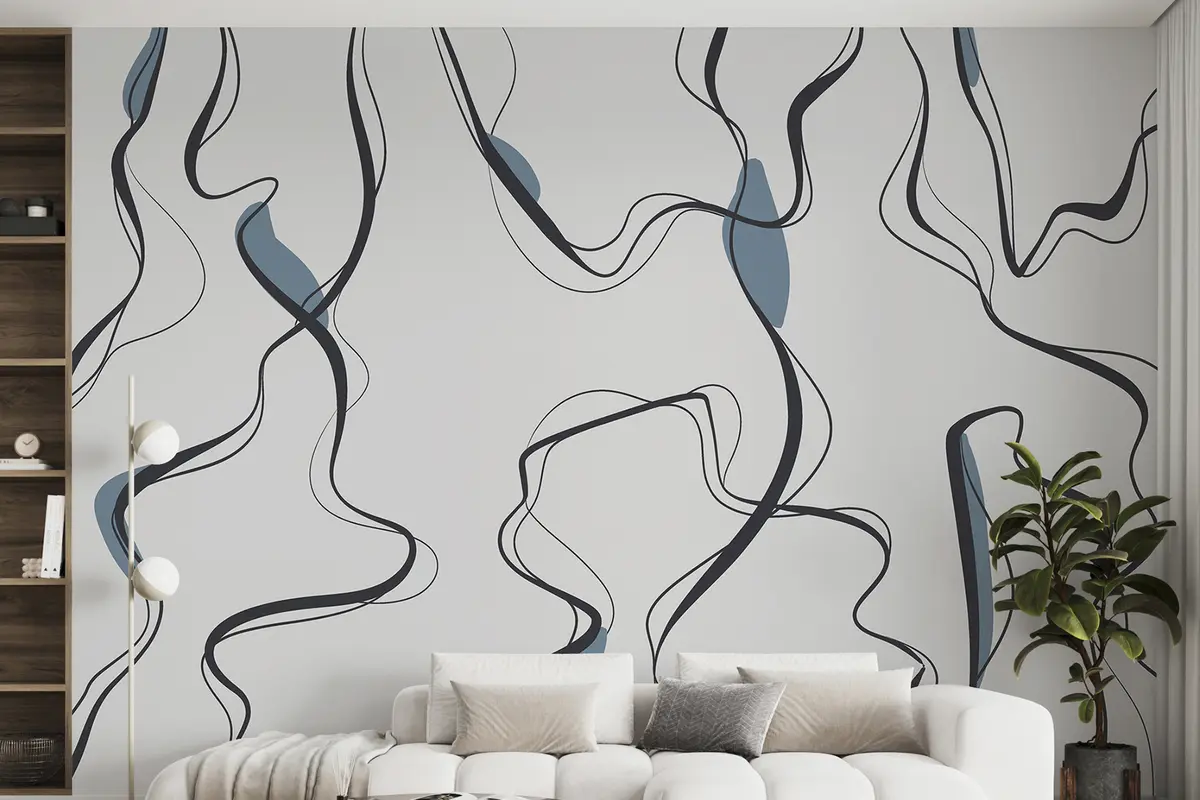 Тапете за зид Уметност цртања мастилом, апстрактни узорак, геометријске линије, сива и плава бр. u99659