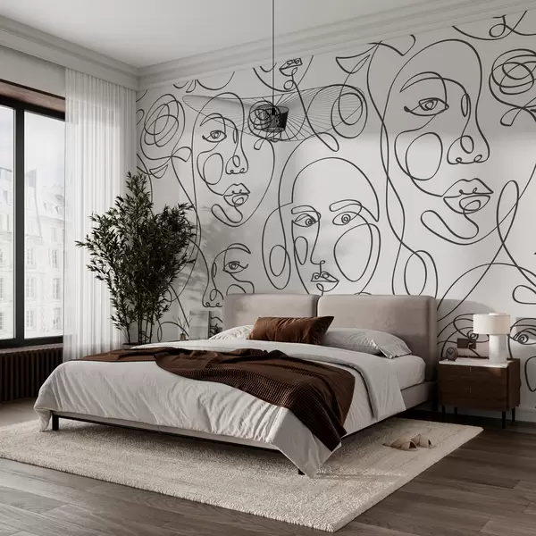 Тапете за зид Силуете лица људи, графичке линије у бохо стилу, нови тренд бр. w00130