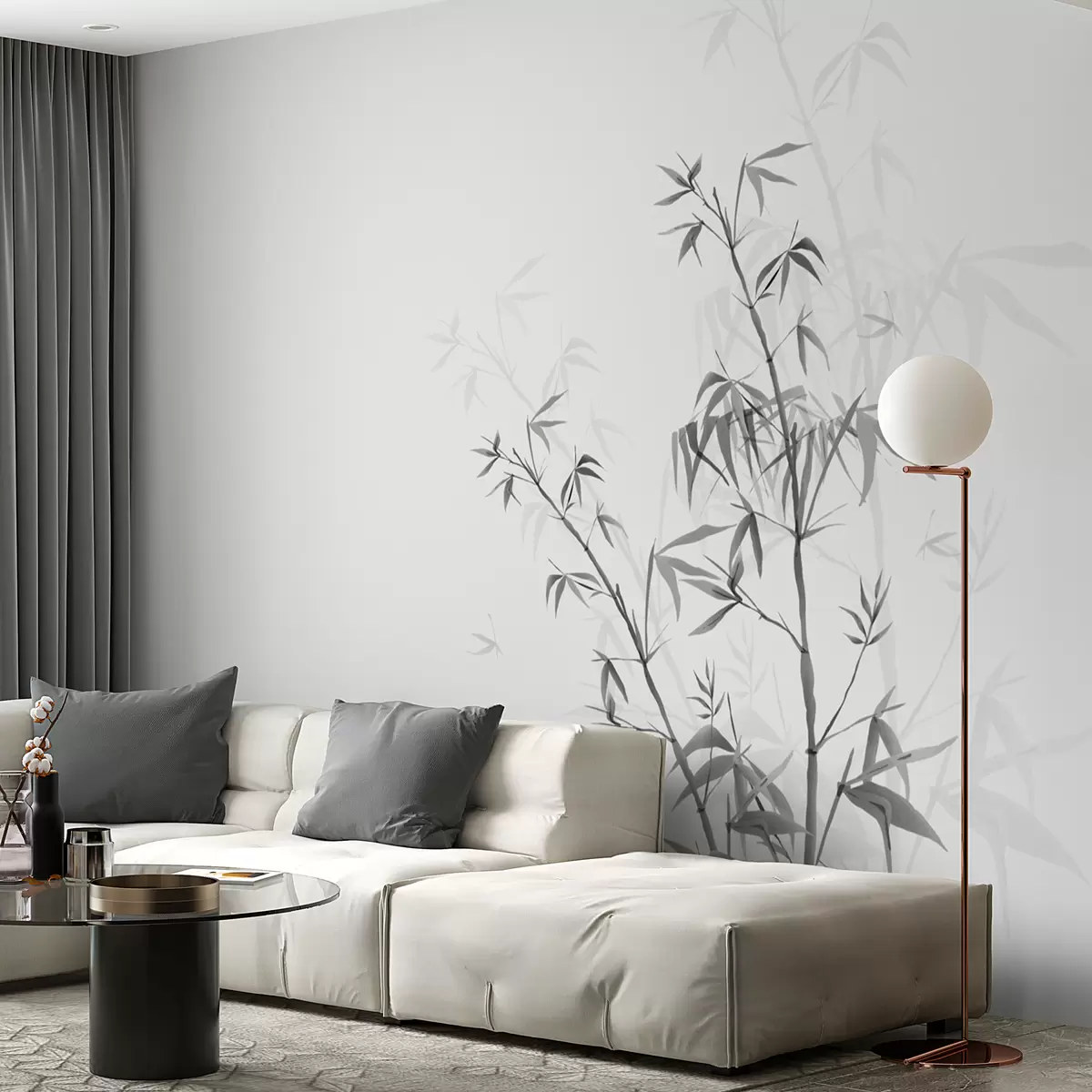 Тапете за зид Стил минимализма Јапанди биљка бамбус Цхиноисерие сиве боје бр. w00546v1