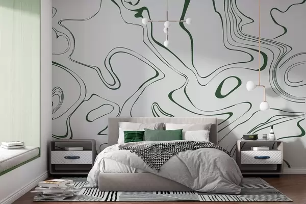 Тапете за зид Линије течности у зеленој и белој боји бр. w00634v3