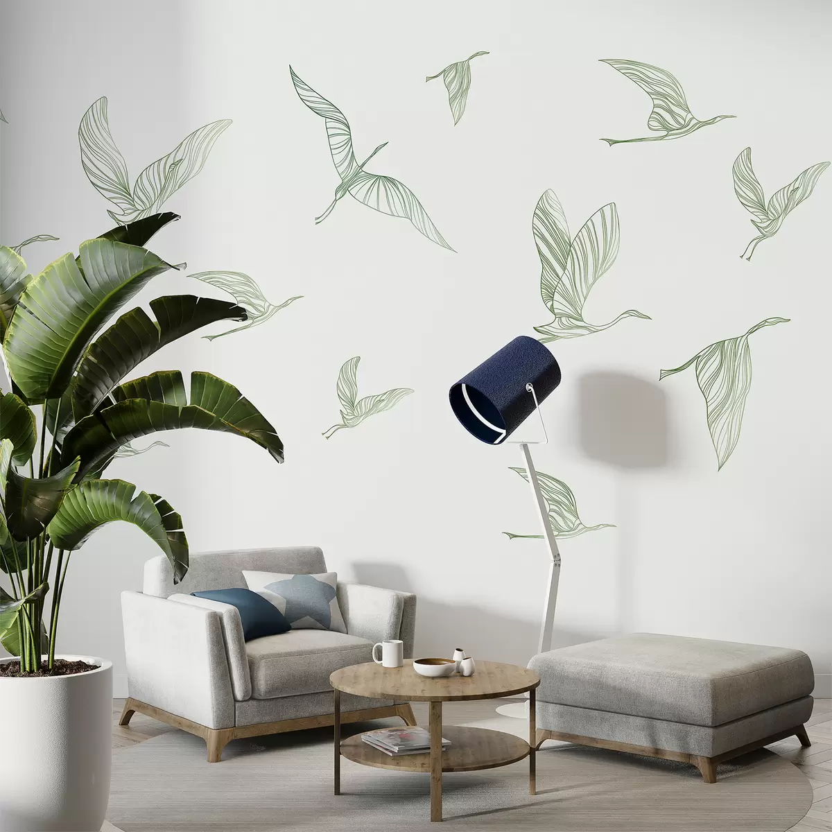 Тапете за зид Летеће птице линијска уметност, минимализам, природа, зелене боје бр. w00758v2