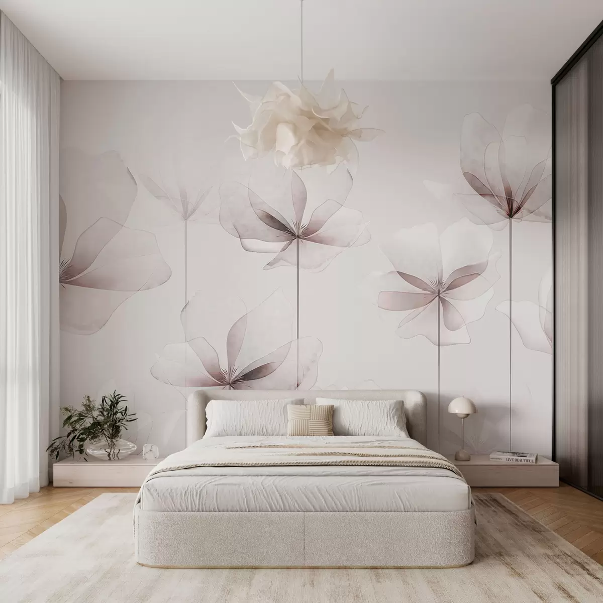Тапете за зид Нежно прозирно цвеће 3Д арт децо тренд модерног стила бр. w00895