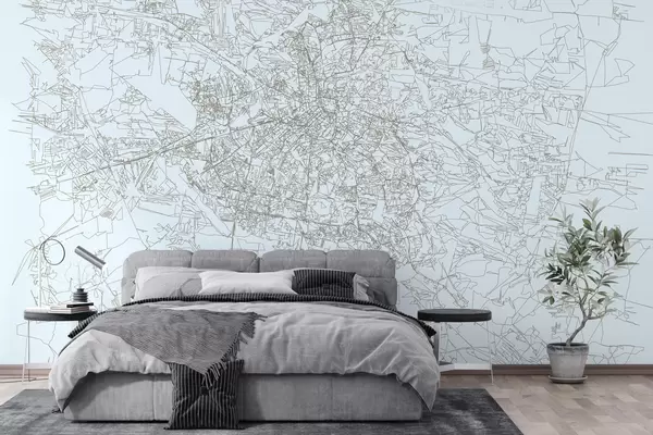 Тапете за зид Увећана мапа Портретни зидни мурал града Лавова на светло плавој позадини бр. w01023