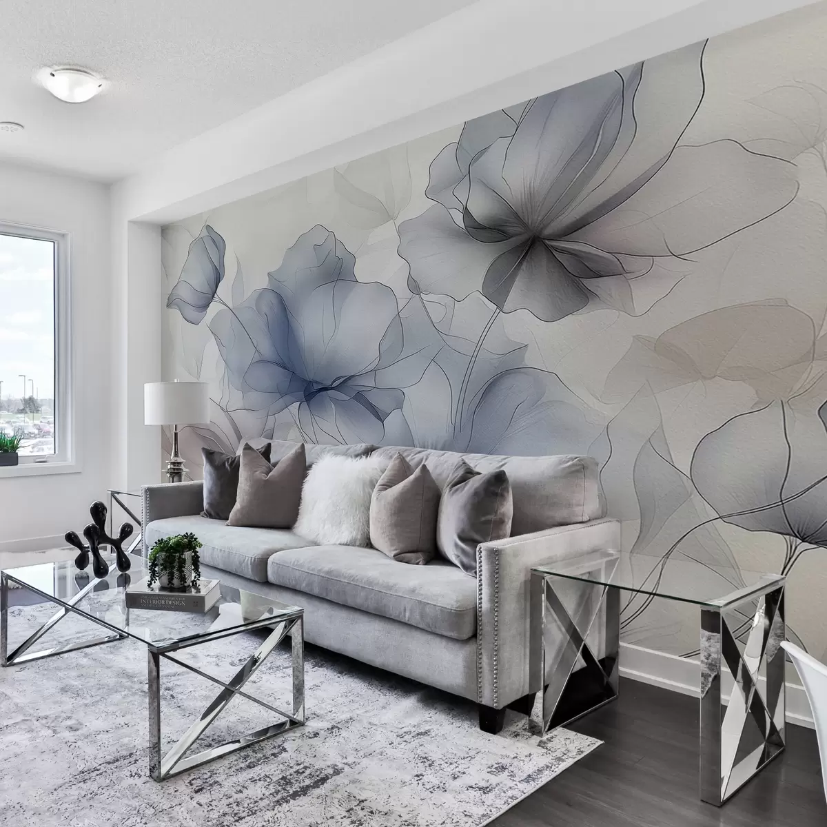 Тапете за зид Апстрактно цвеће на бетонском зиду бр. w01037