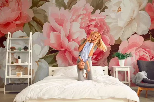 Тапете за зид Ружичасти и бели божури бр. w01064