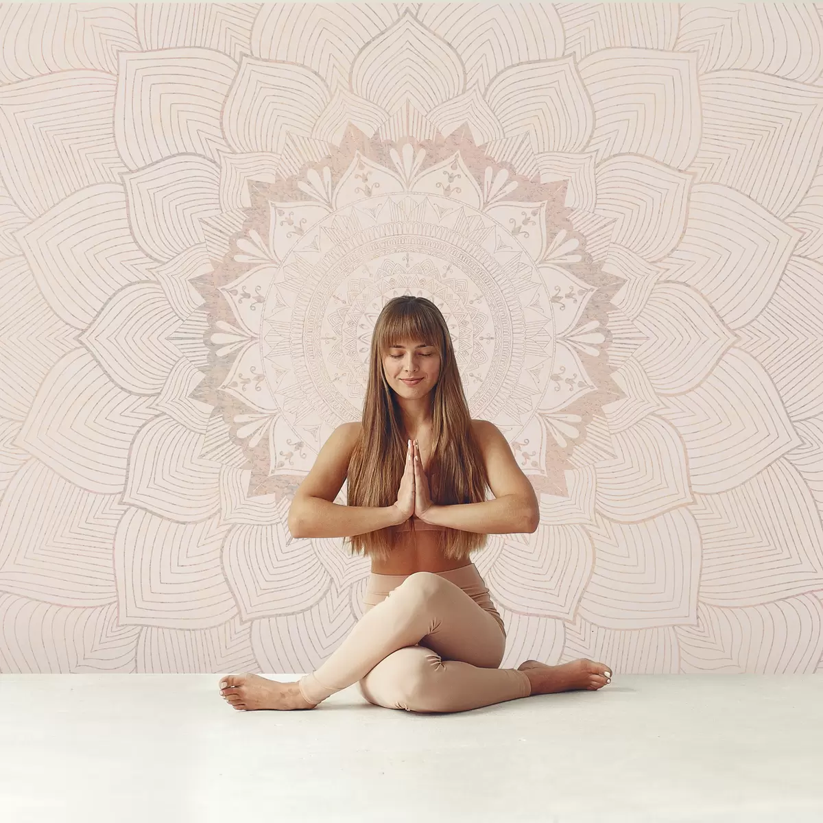 Тапете за зид Округла мандала, тапета за јога простор или за хармонизацију личног простора. Зидна мандала у топлим пастелним бојама на текстурираној неправилној позадини бр. w01088