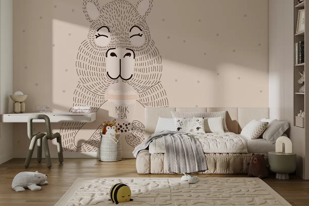 Тапете за зид Велика слатка капибара са мехурићима у минималистичком стилу тачака на беж тачкастој позадини бр. w01122v1
