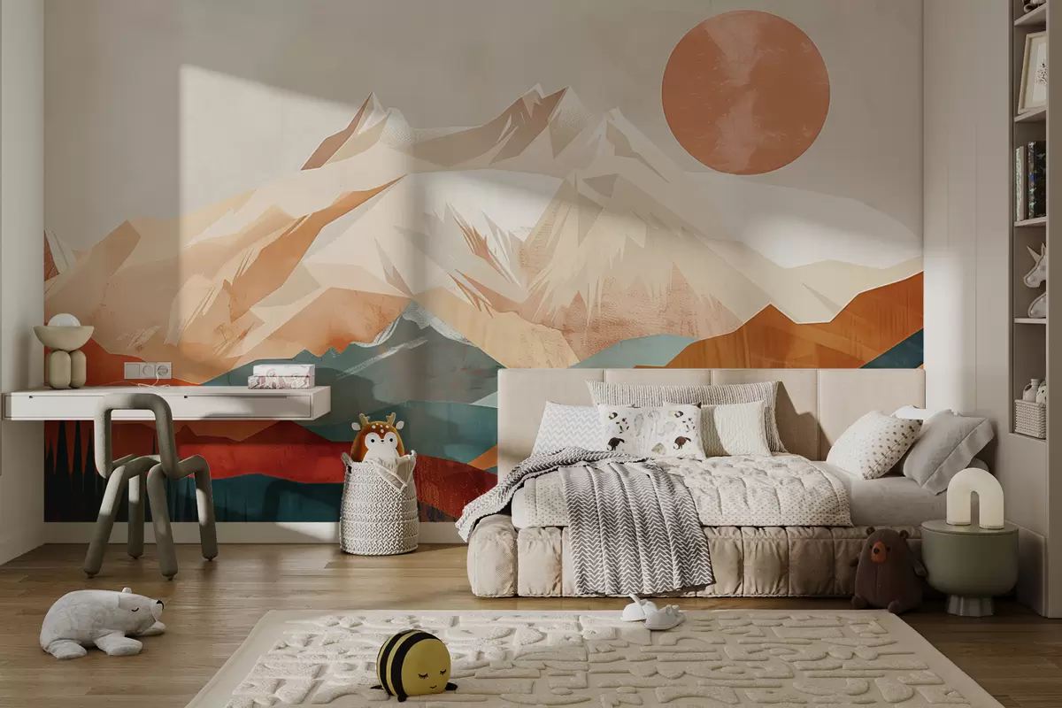 Тапете за зид Бохо блаженство: спокојан пејзаж планина, дрвећа и сунца бр. w01358