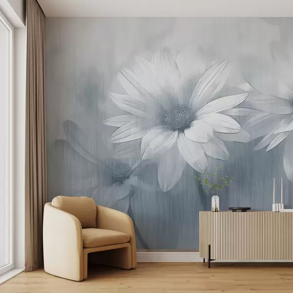 Тапете за зид велико цвеће на текстурном зиду плаве боје бр. w01374v1