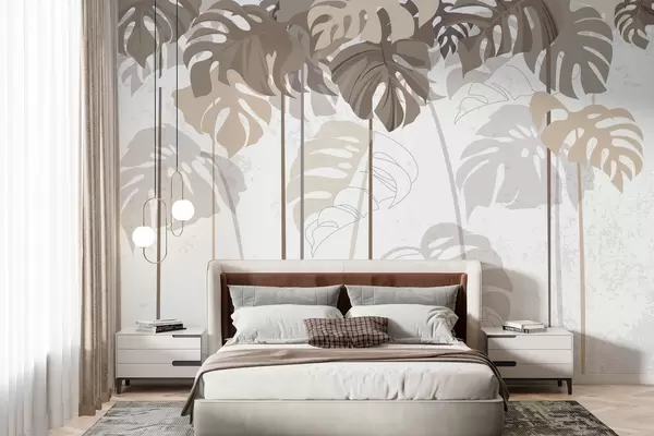 Тапете за зид Тропицс Монстера оставља светло беж тонове бр. w01454