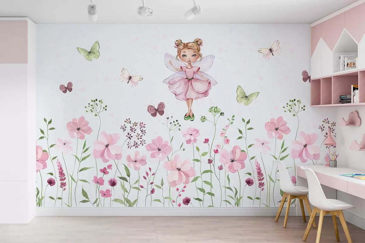 Тапете за зид Вила међу цвећем и лептирима бр. w01460